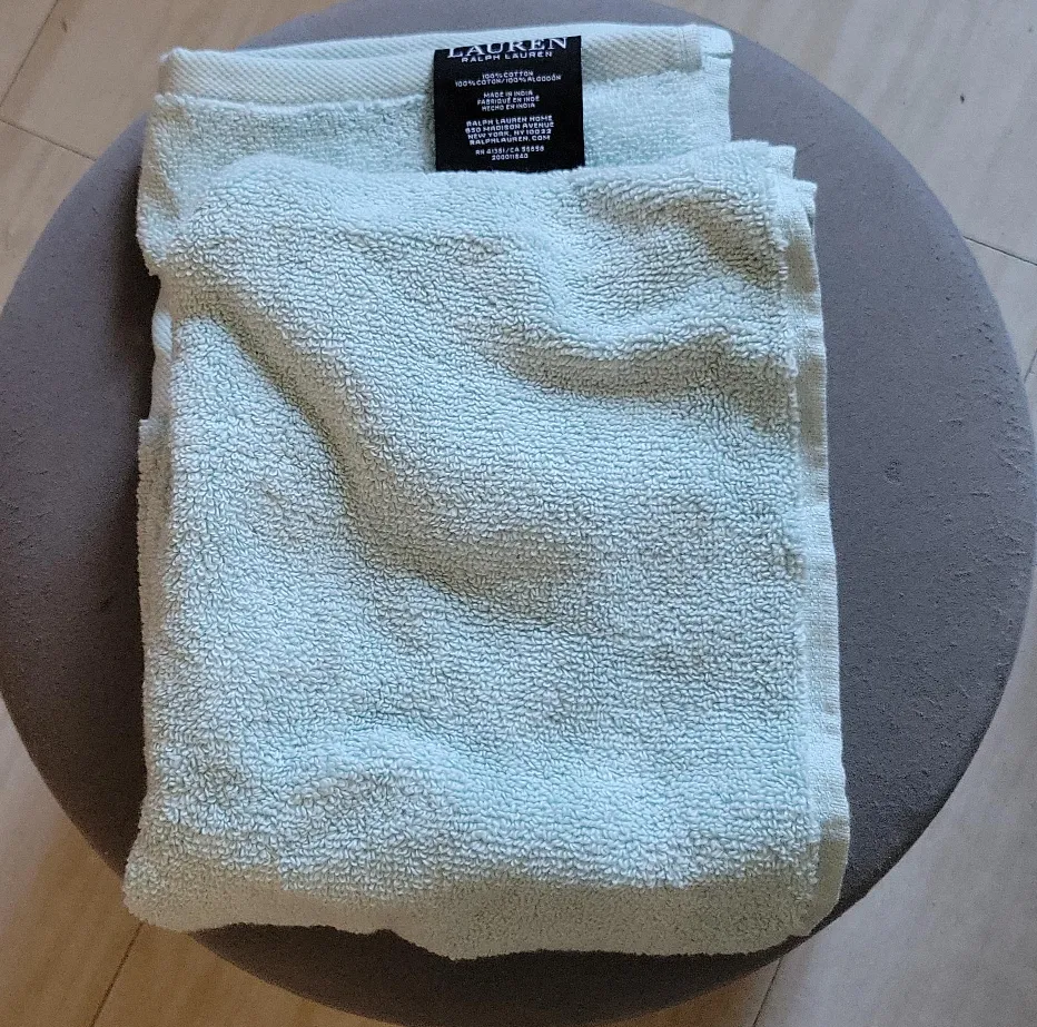 Selling a light blue Ralph Lauren towel. It's made of 100% cotton and feels very soft! Perfect for adding a touch of luxury to your bathroom.