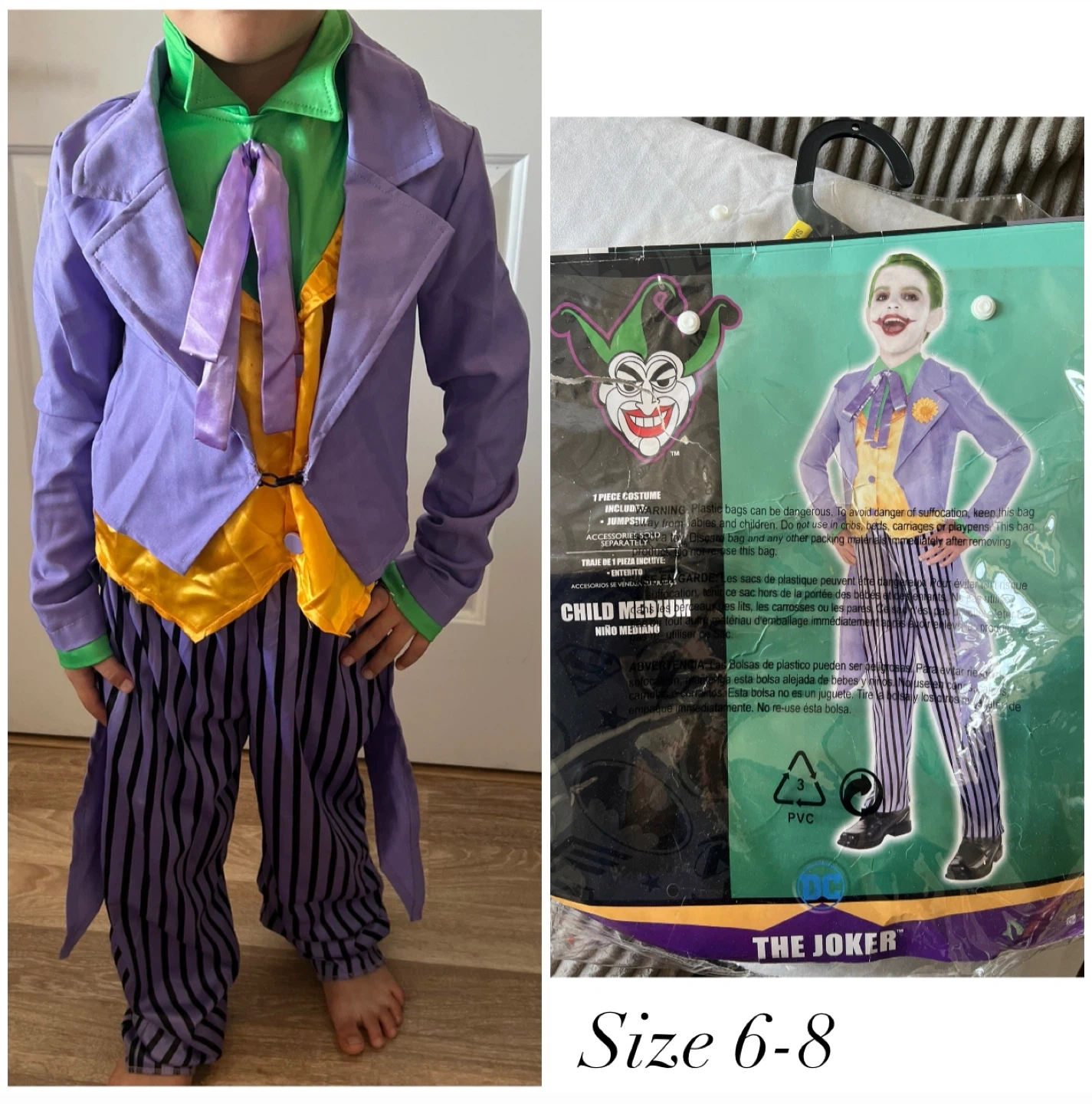 - The Joker costume, size 6-8