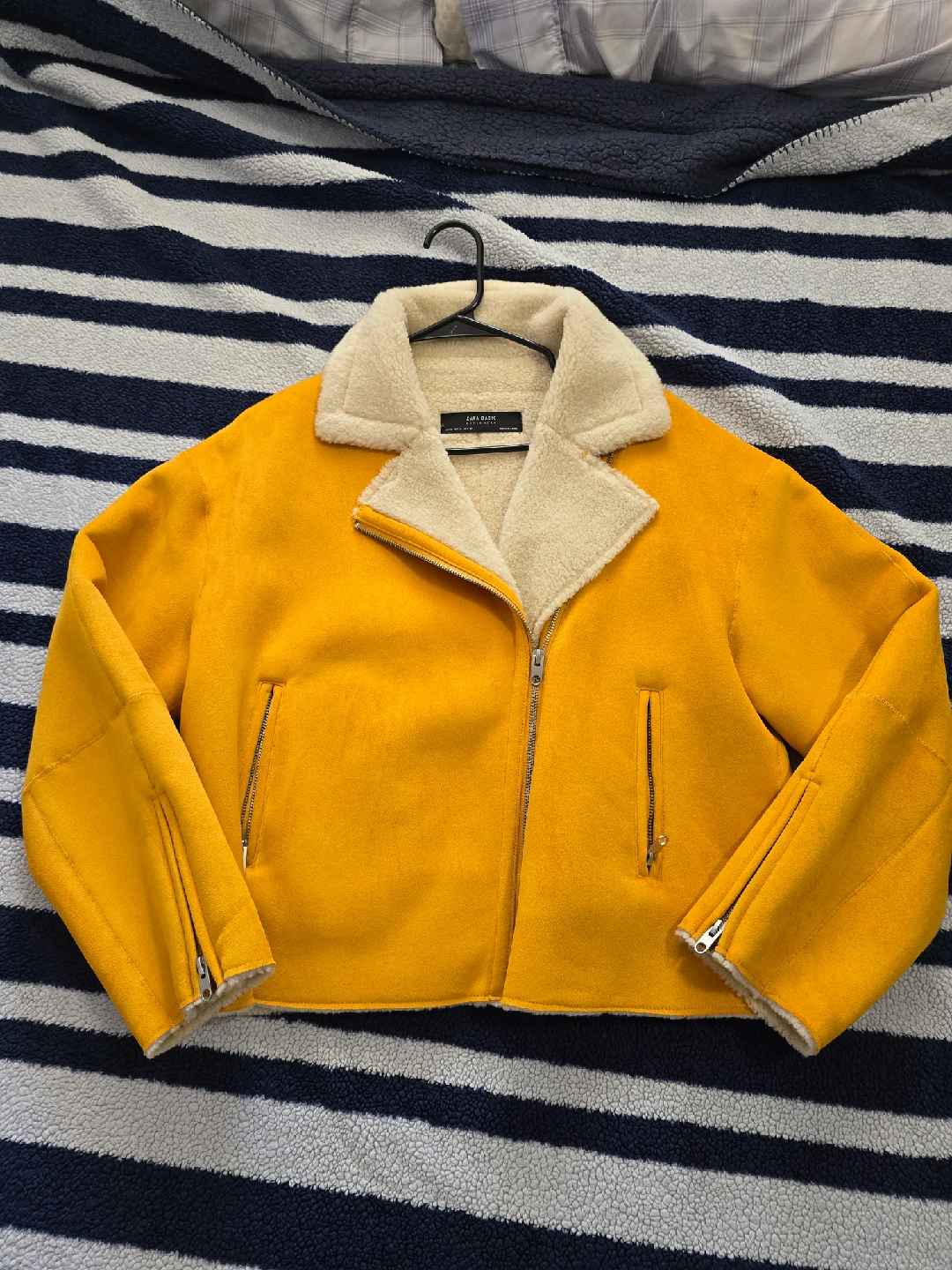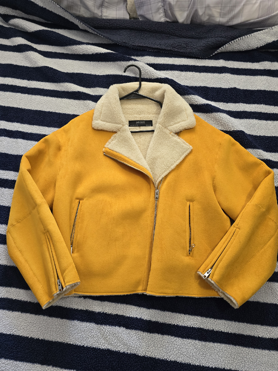 Selling a Zara Basic jacket in a lovely yellow colour! It's made of a soft faux suede material and features a cozy faux shearling lining. Never really used — only tried it on for fitting. It’s a bit too big for me.