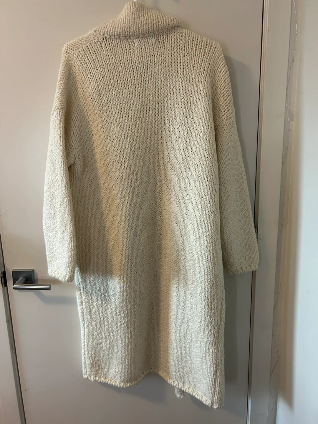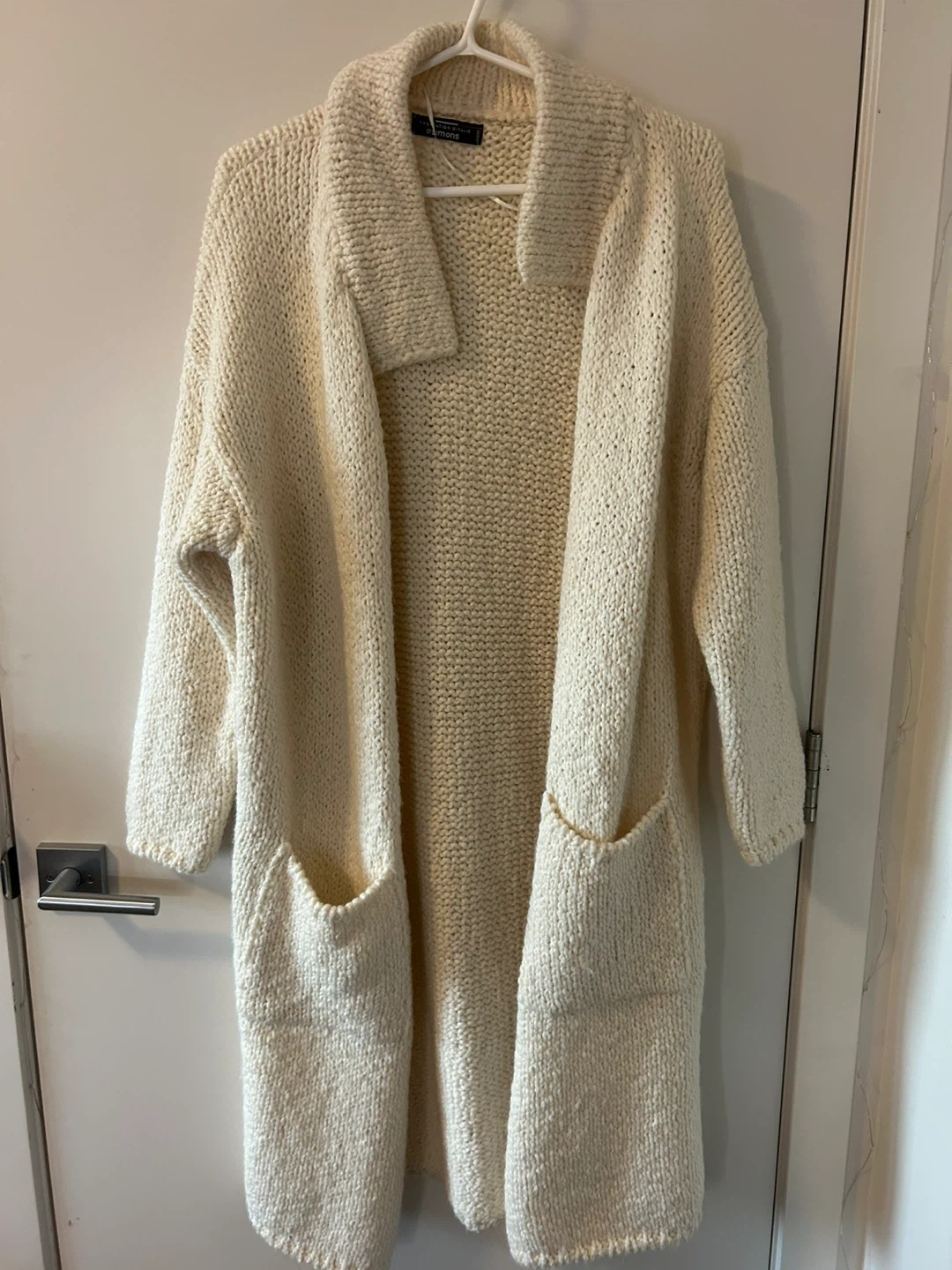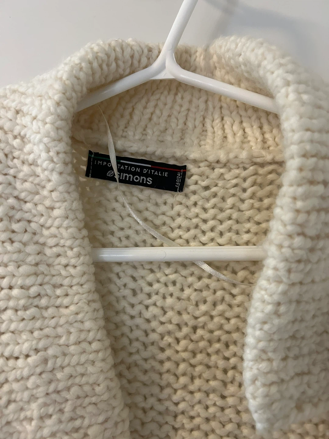 Cozy up with this cream-coloured knit cardigan from Simons! It's a wool blend, perfect for adding a layer of warmth on chilly days. Features a relaxed fit and handy pockets. Great for throwing over any outfit!