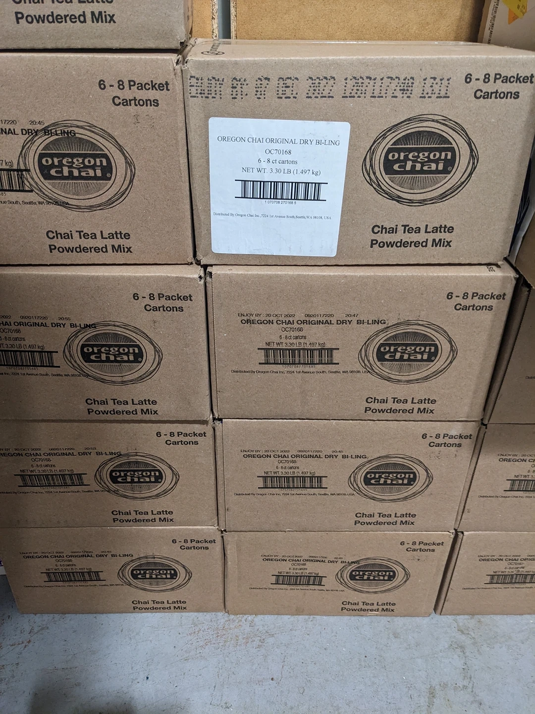 I have 14 boxes. Each box contains 6 cartons of 8 packets. Take as many boxes you want.