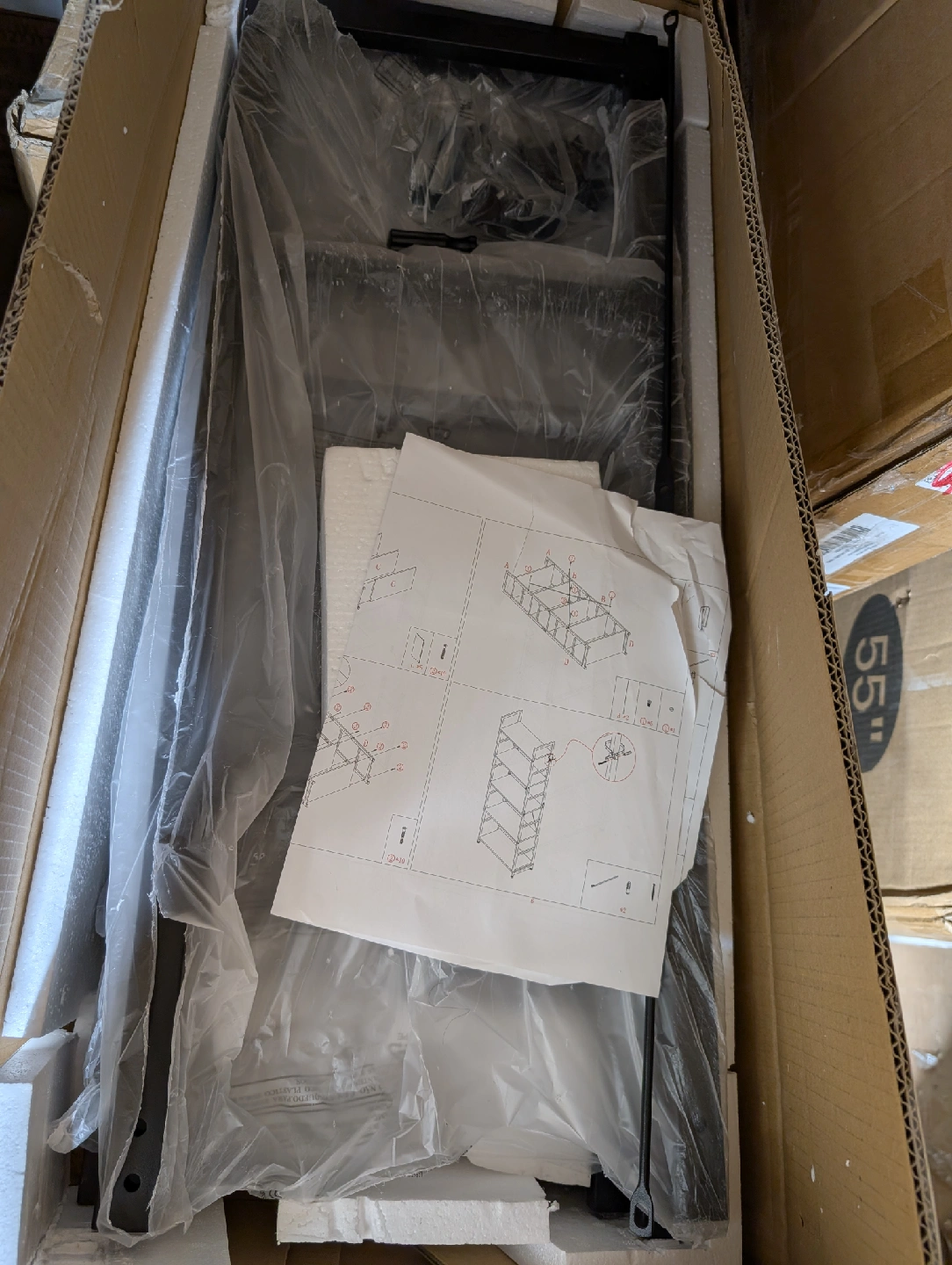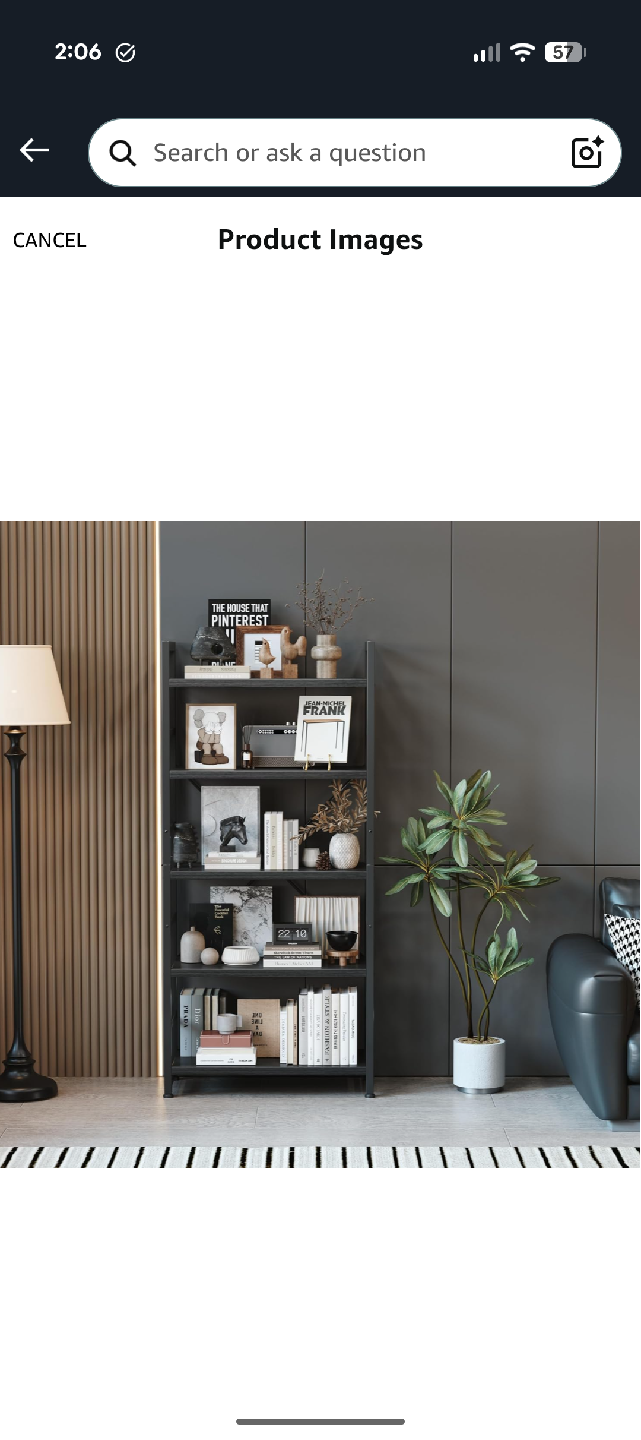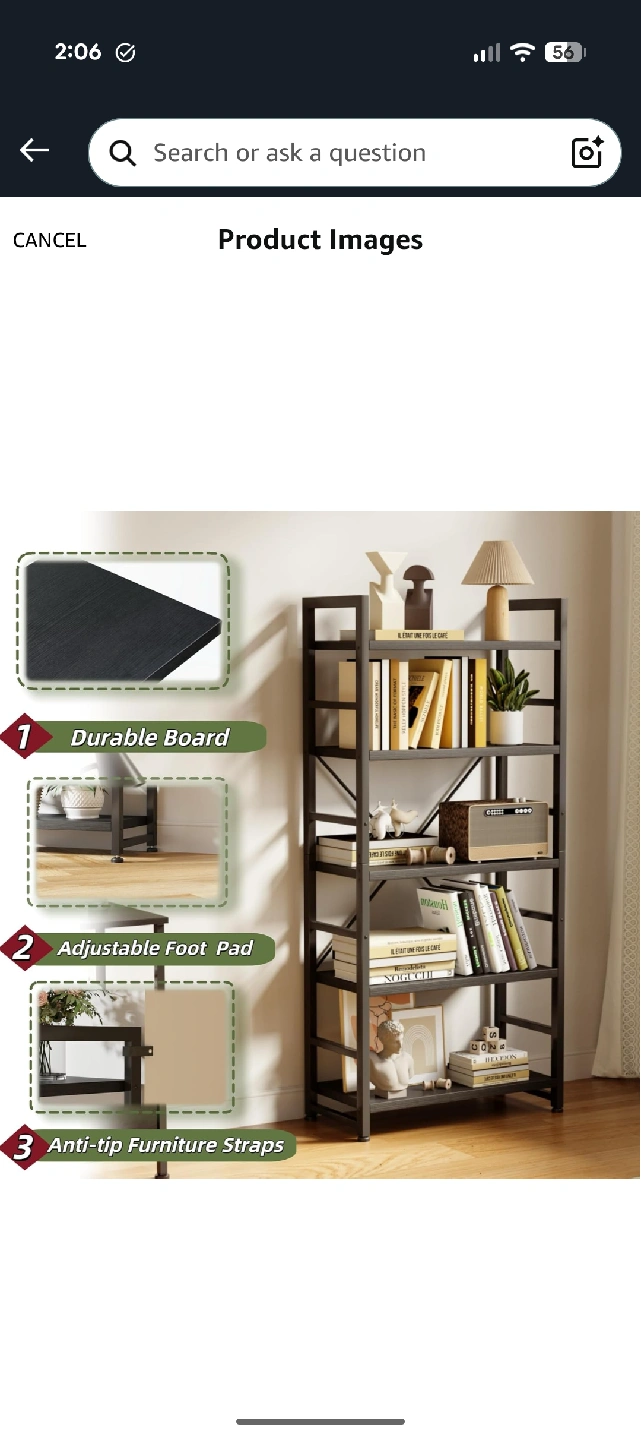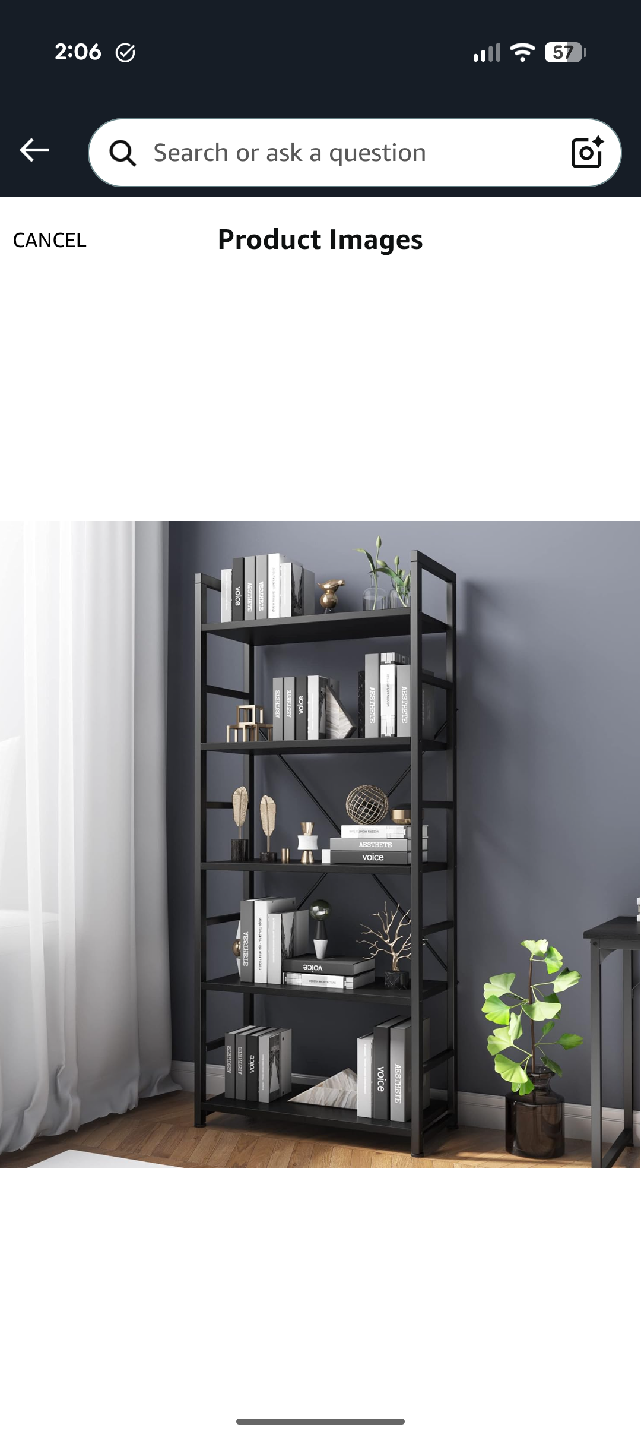 This is a black metal 5-tier shelf. It's great for organizing your kitchen, living room, or office. The dimensions are approximately 65 inches tall, 23.6 inches wide, and 11.8 inches deep. It's brand new never assembled and ready for a new home