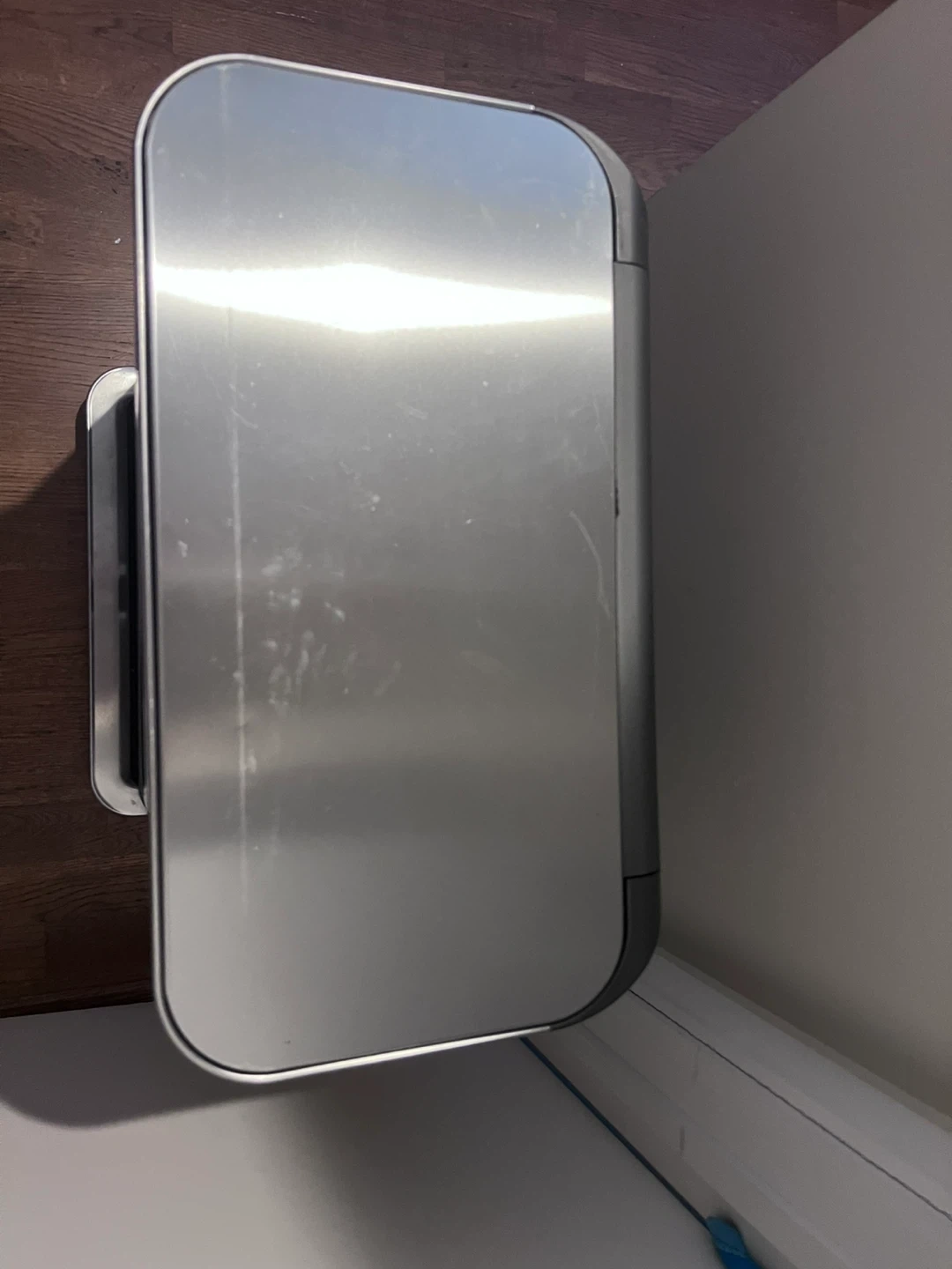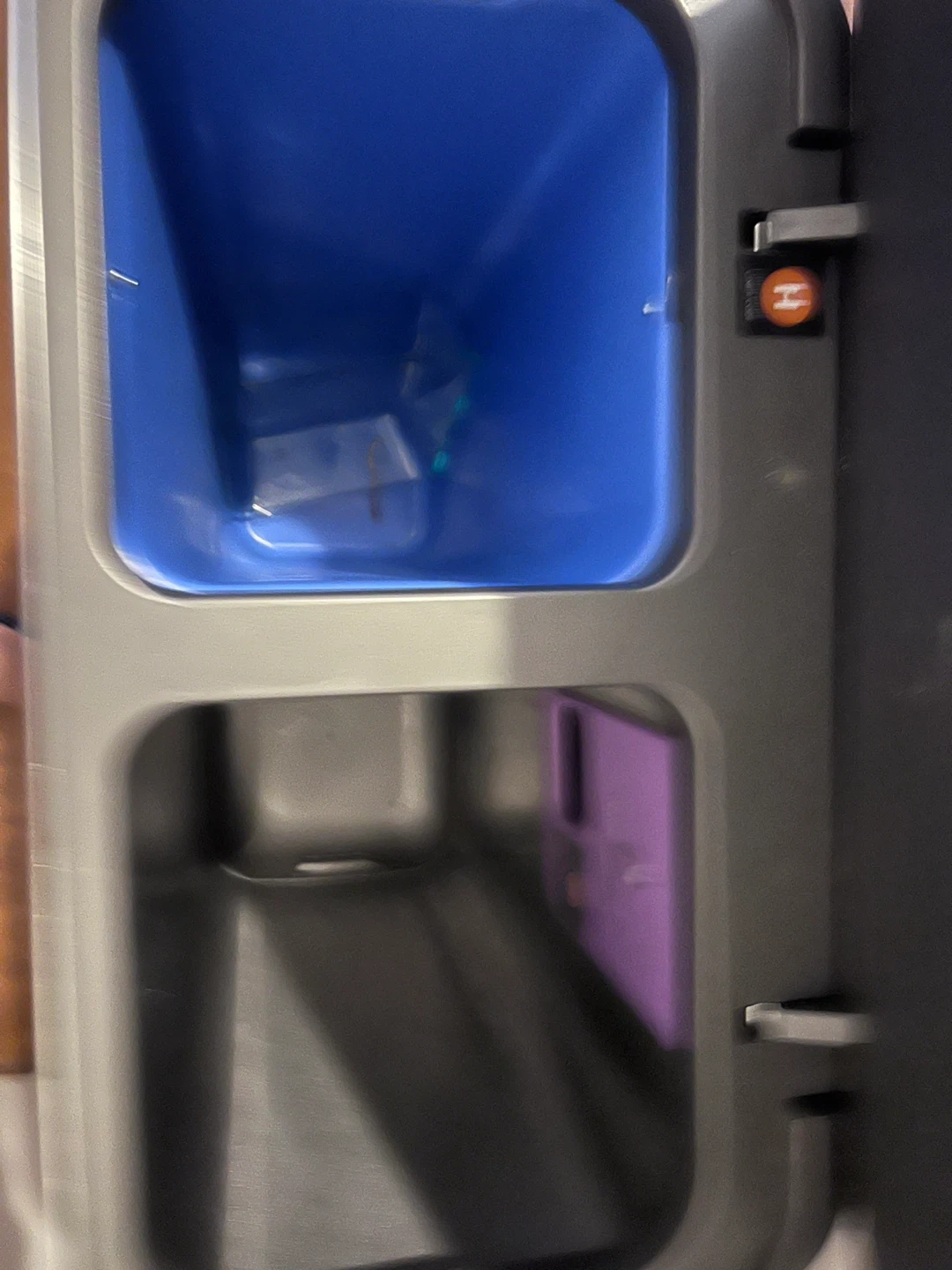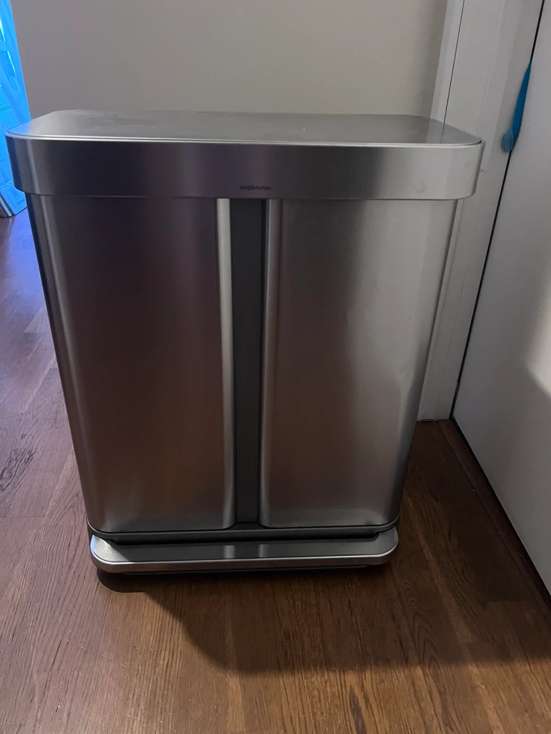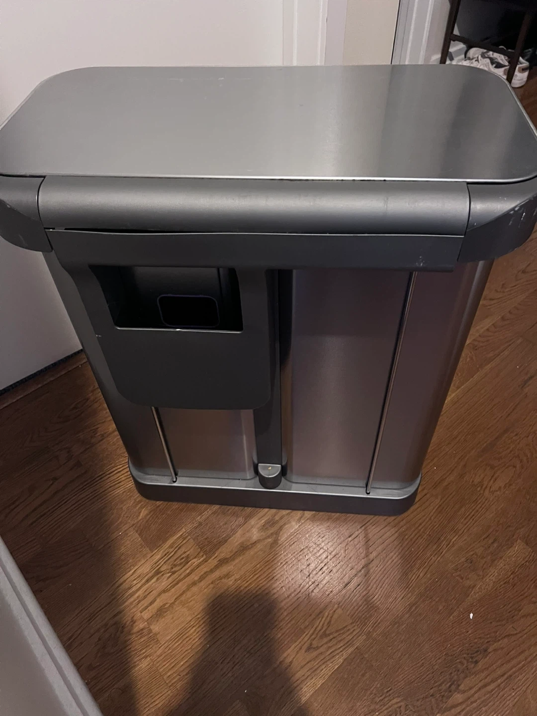 Selling a simplehuman dual compartment recycler trash can. It's in good condition and ready for a new home! there’s a small dent on the side. Perfect for separating your trash and recyclables in one convenient container