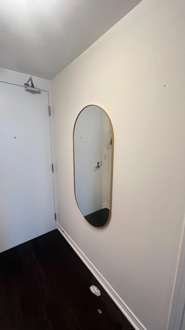 Enhance your home decor with this stylish oval mirror featuring an elegant gold trim. This eye-catching mirror is in good condition and ready to add a touch of sophistication to any room. Perfect for entryways, bathrooms, or as a decorative accent in your living space. Additional Details: * Shape: Oval * Trim: Gold * Condition: Good