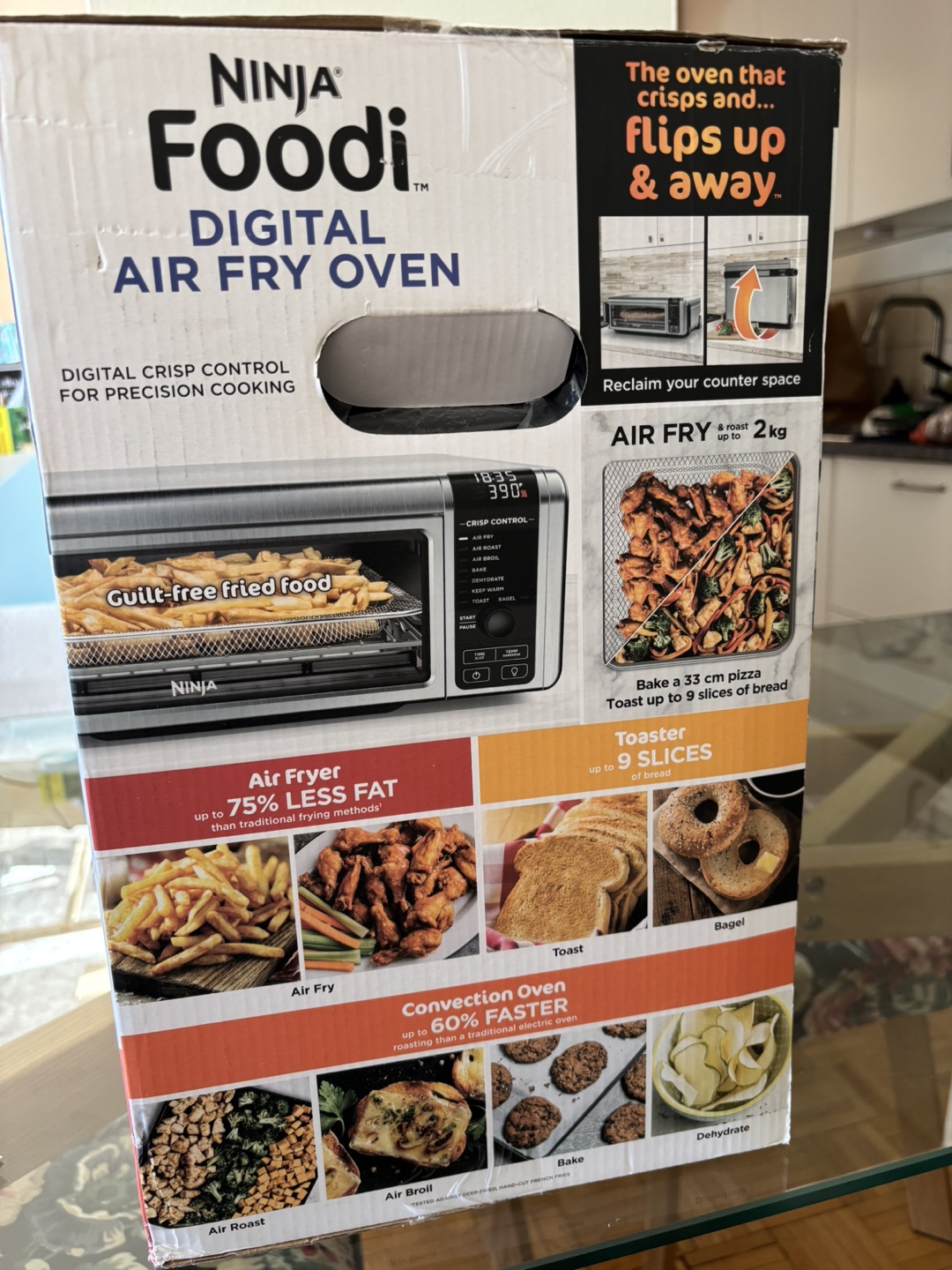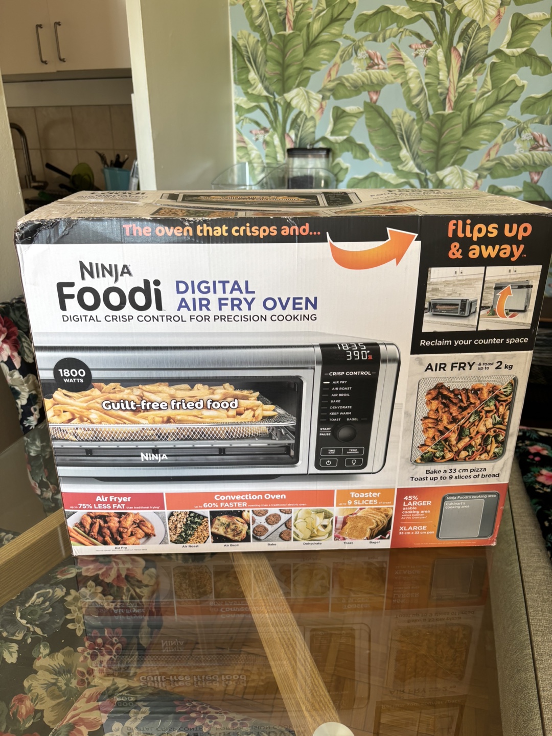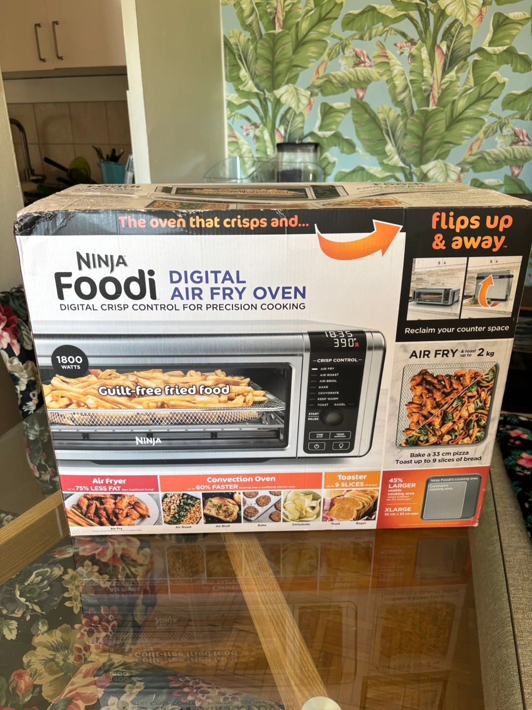 Selling a Ninja Foodi Digital Air Fry Oven in excellent condition! This oven crisps and flips up and away for easy storage. It features digital crisp control for precision cooking. It's an air fryer, convection oven and toaster all in one! It can air fry up to 75% less fat than traditional frying methods and is 60% faster than a convection oven!