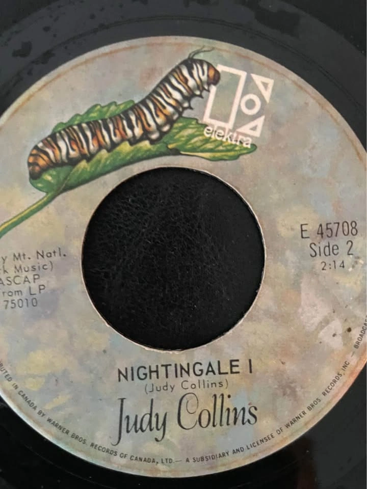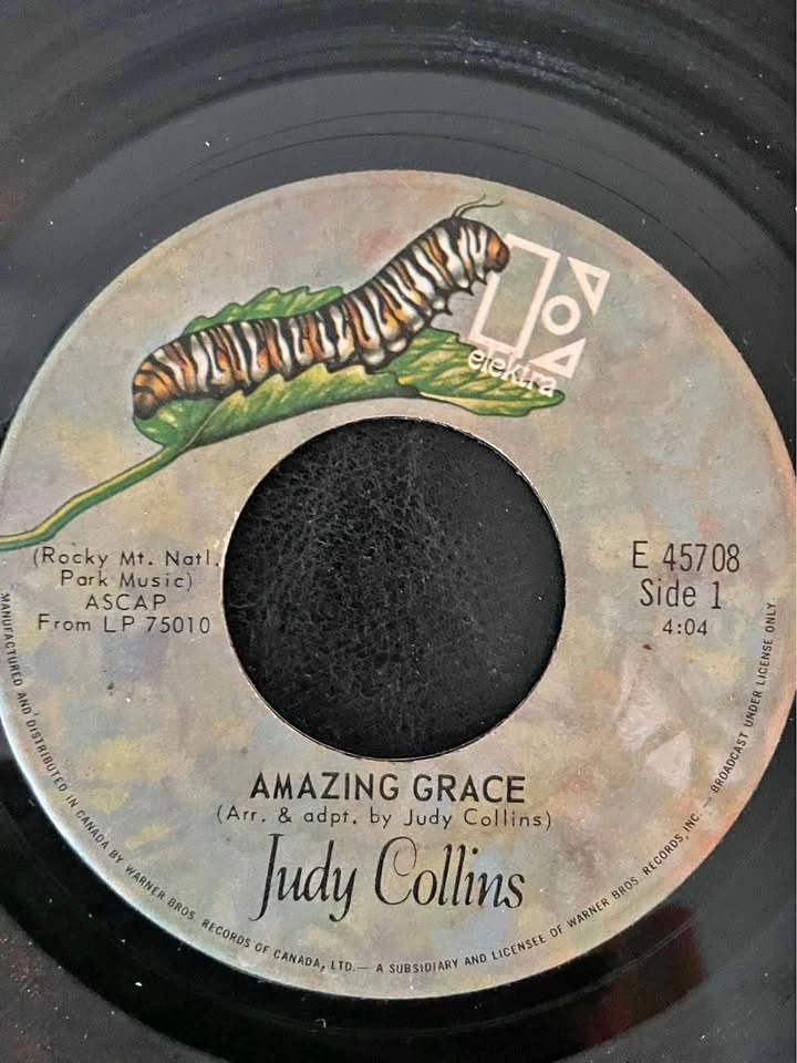 Vocal/folk gem from Judy Collins. This is the Elektra single pairing her adaptation of Amazing Grace with Nightingale I. Label reads E‑45708 on Elektra — a desirable folk‑era 45 for collectors.