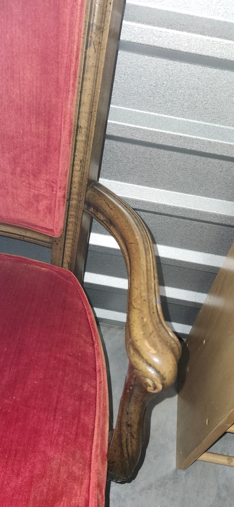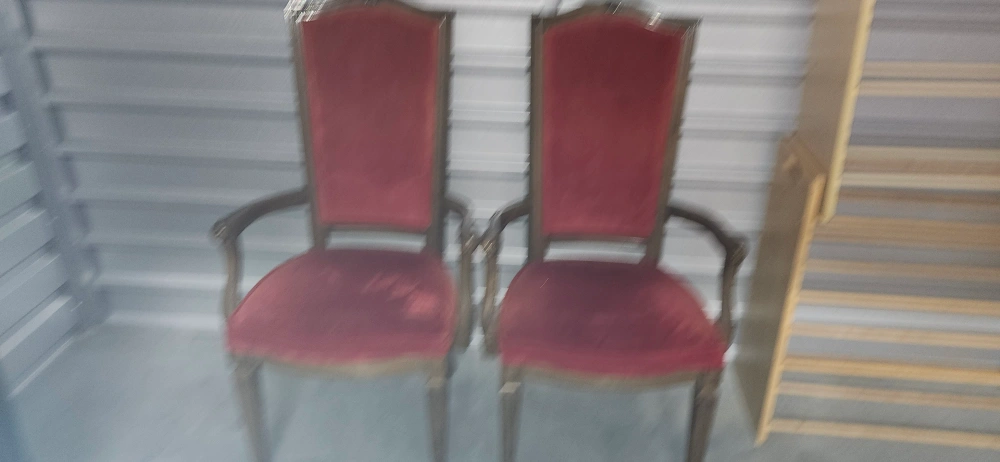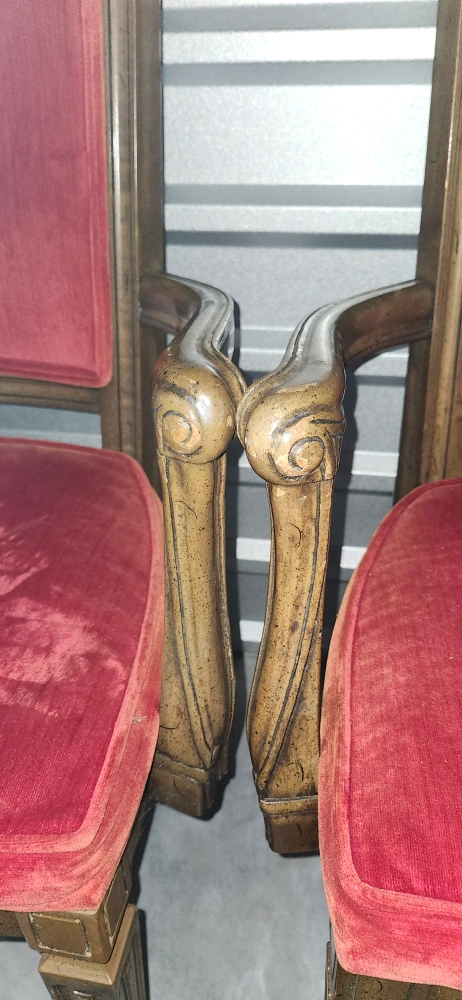 15Selling a pair of elegant accent chairs featuring a rich red velvet upholstery. These chairs have a classic design with ornate details on the wooden frame. They would make a great addition to any living room or dining area!