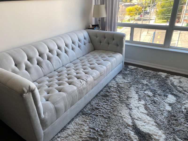 Selling a comfy light grey sofa. It's in great condition and would look great in any living room!