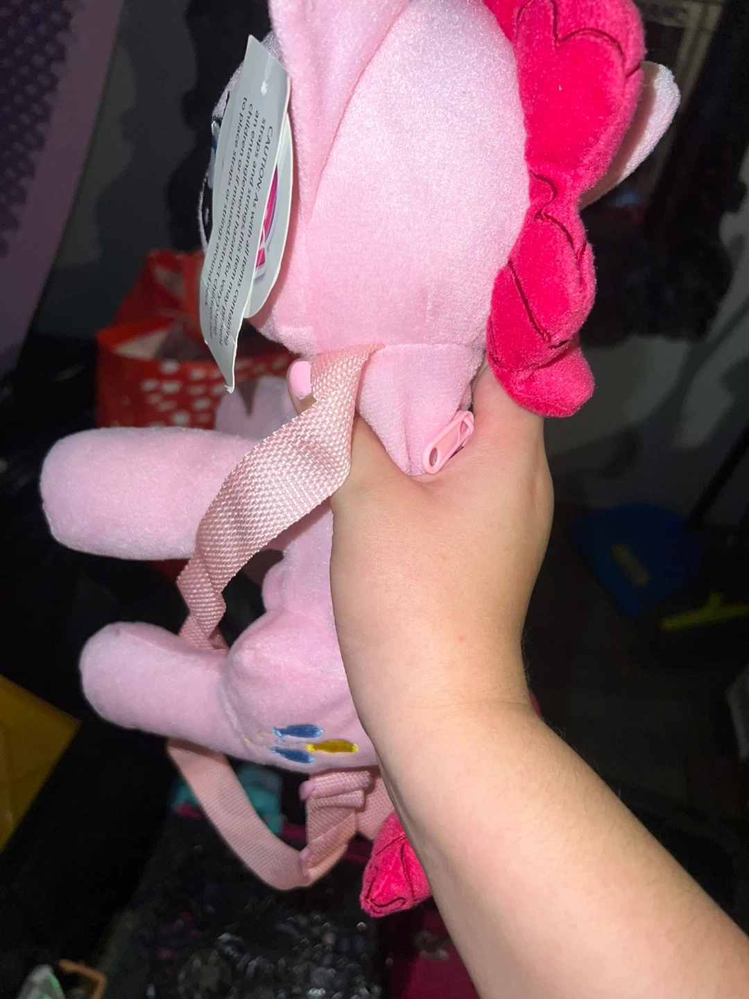 This is an adorable My Little Pony Pinkie Pie plush backpack! It's in great condition and ready for a new home. The backpack is a soft, plush material and features Pinkie Pie's signature pink color and cutie mark. Perfect for any My Little Pony fan!