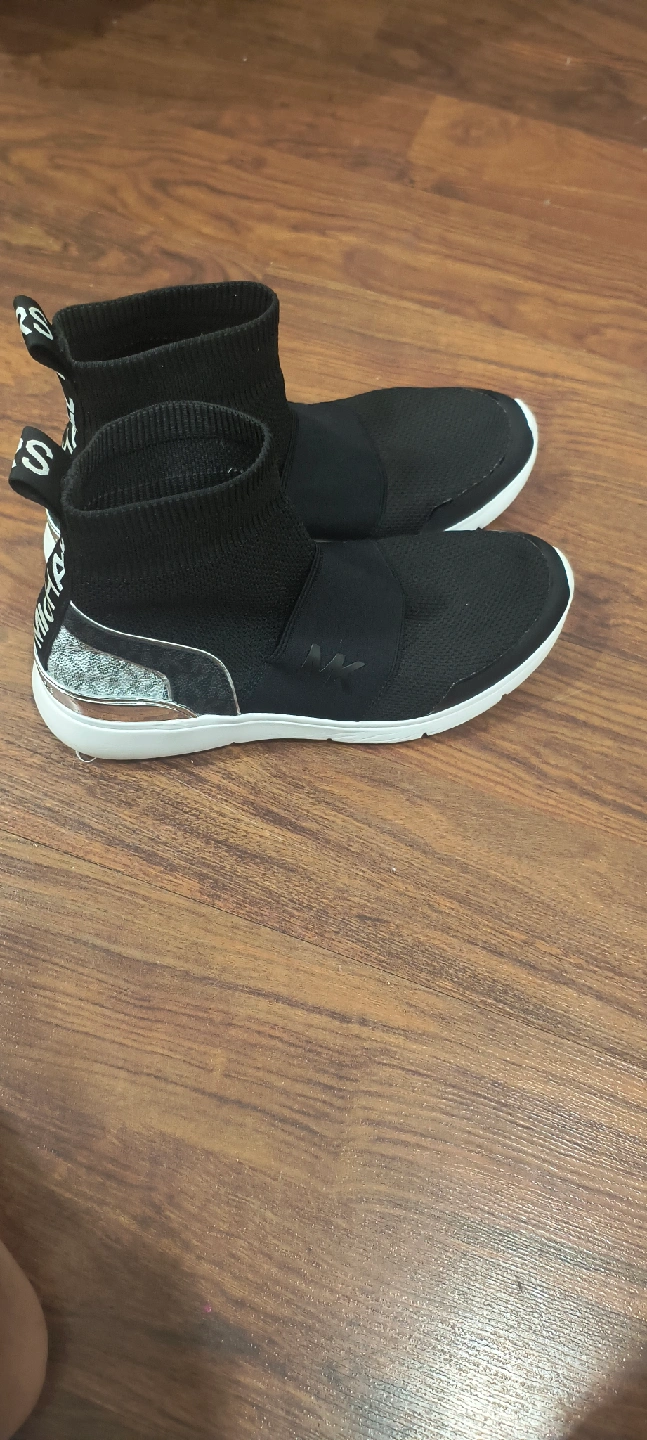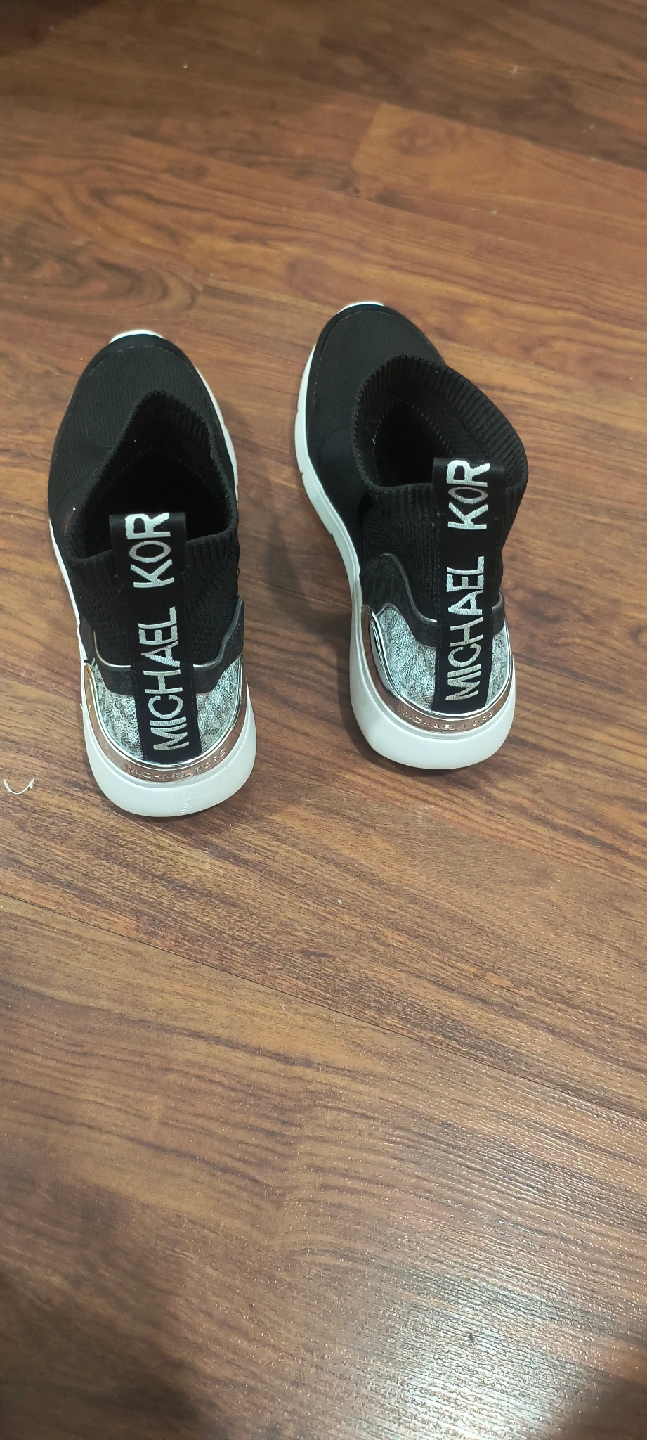 Stylish Michael Kors black slip-on sneakers! These are in great condition and feature the Michael Kors logo on the back. Perfect for a casual yet chic look