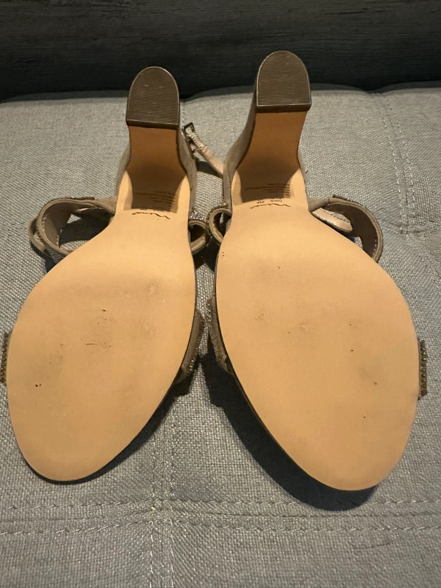 Nude heels, women’s size 7. Sparkly straps with stones, no glitter. Cash only at pick up. Size: 7. Let me know if you're interested!