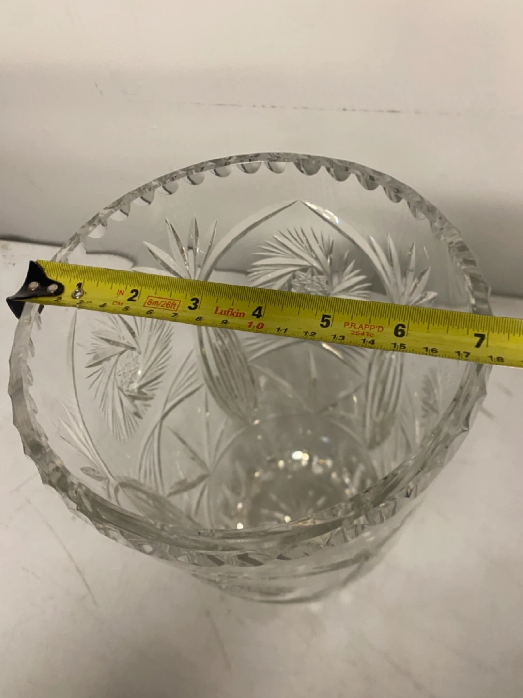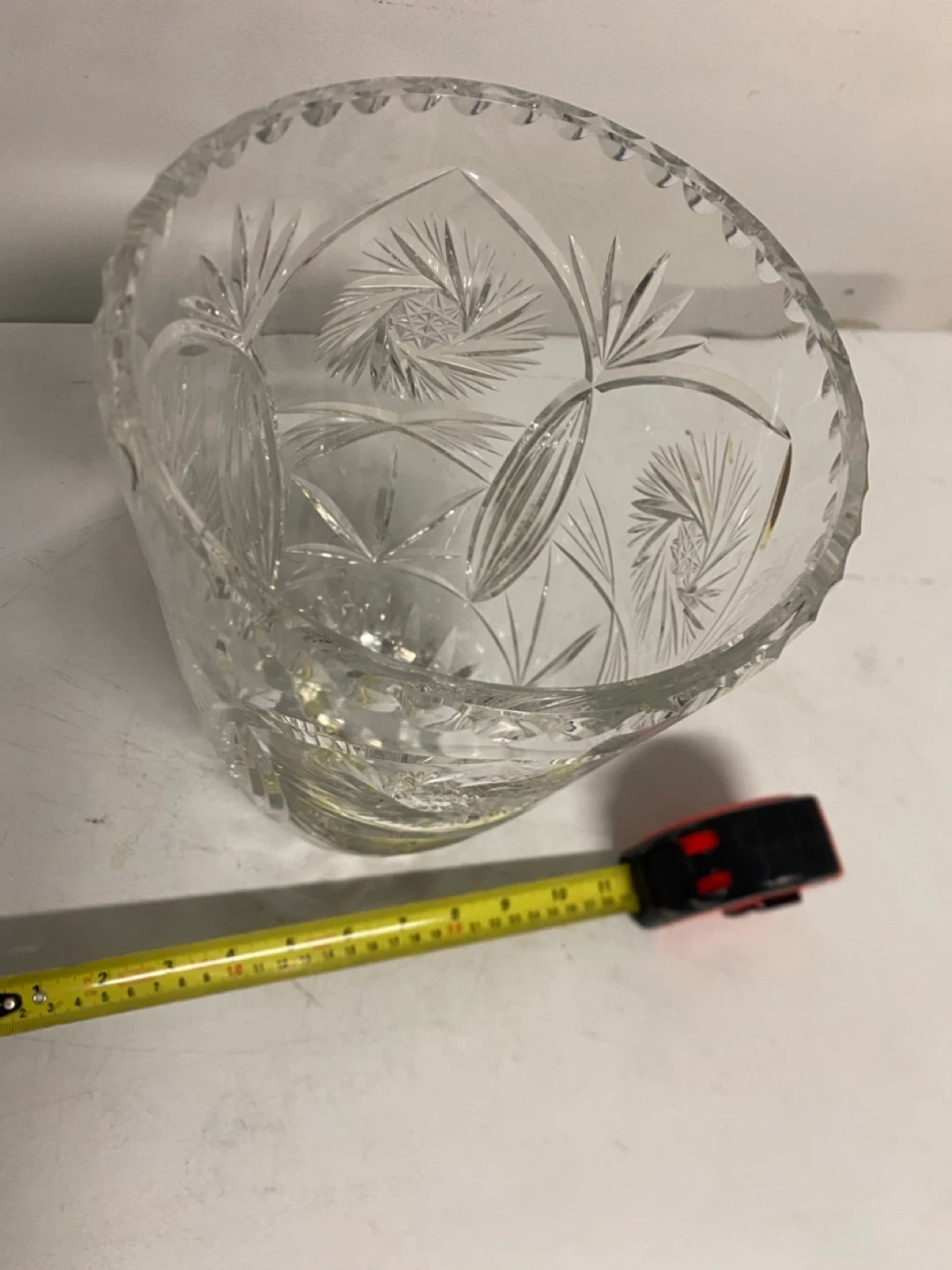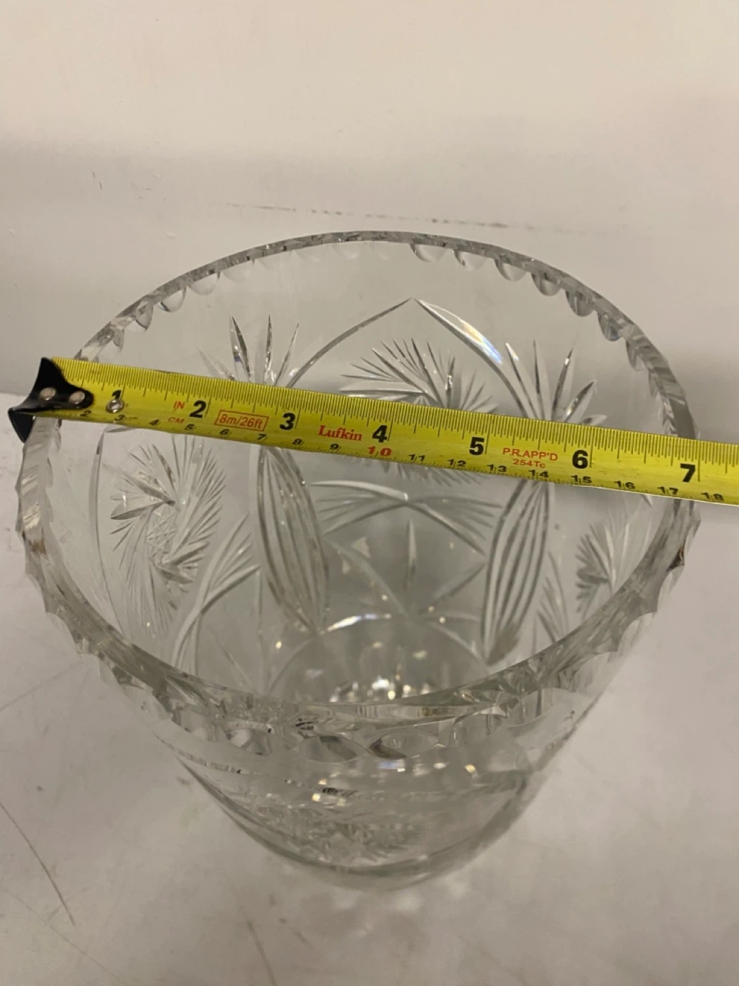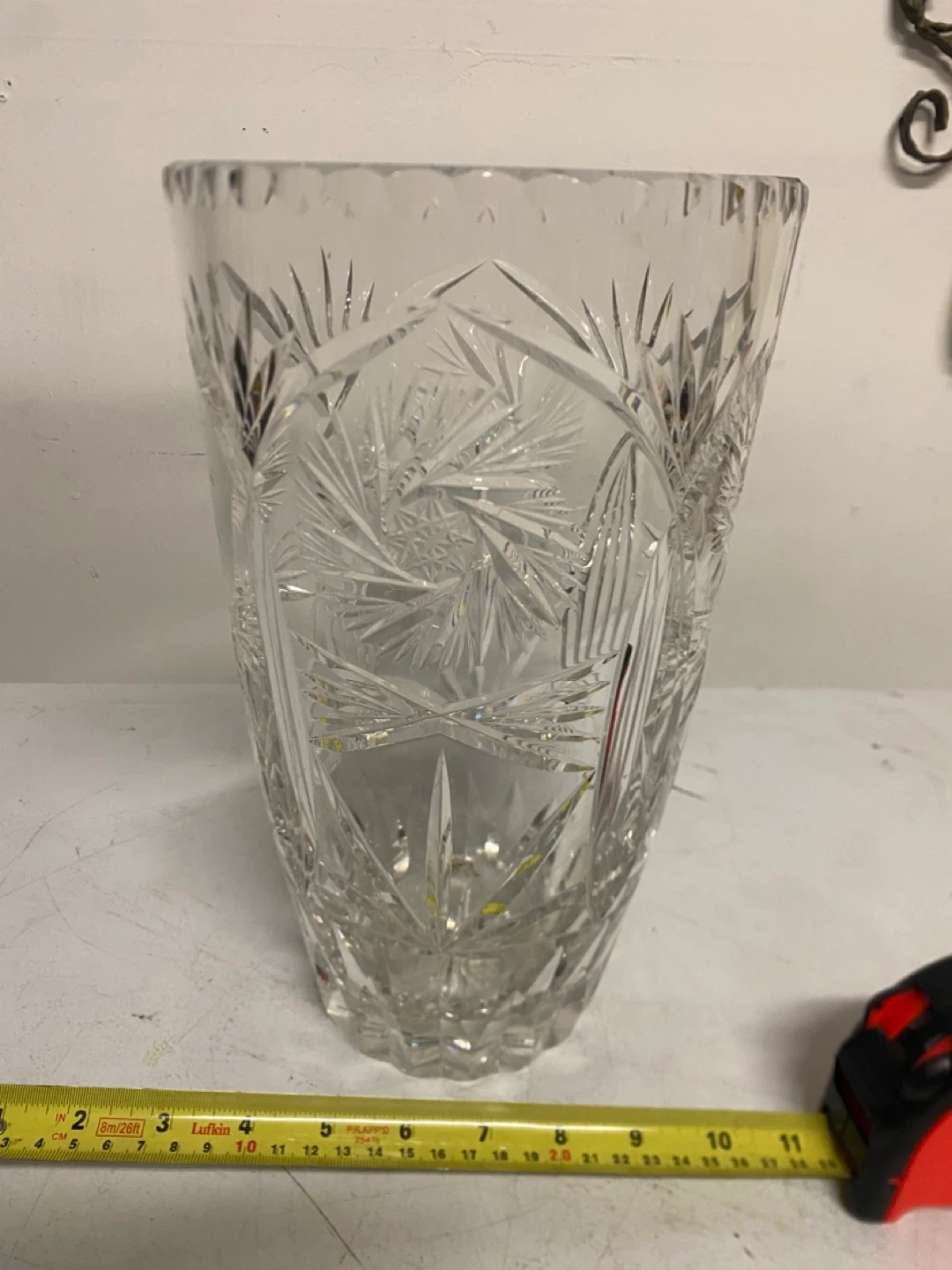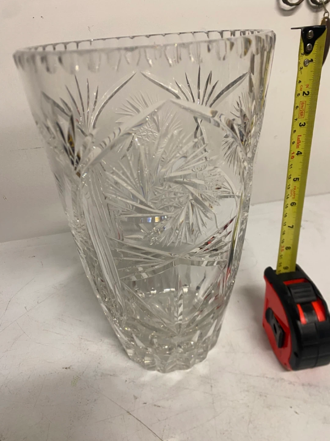 Beautiful large vintage crystal vase with intricate starburst design Perfect for displaying flowers or as a decorative piece This is one of the most beautiful and large vases I have seen.