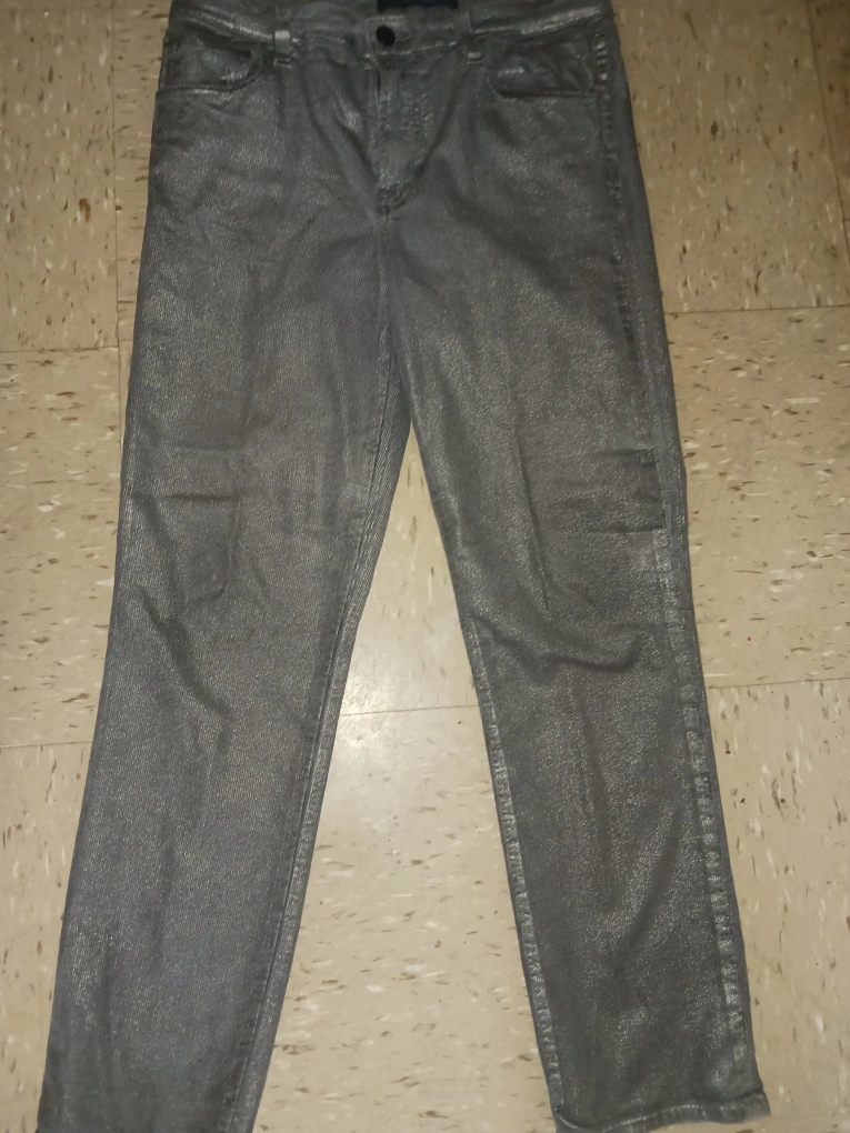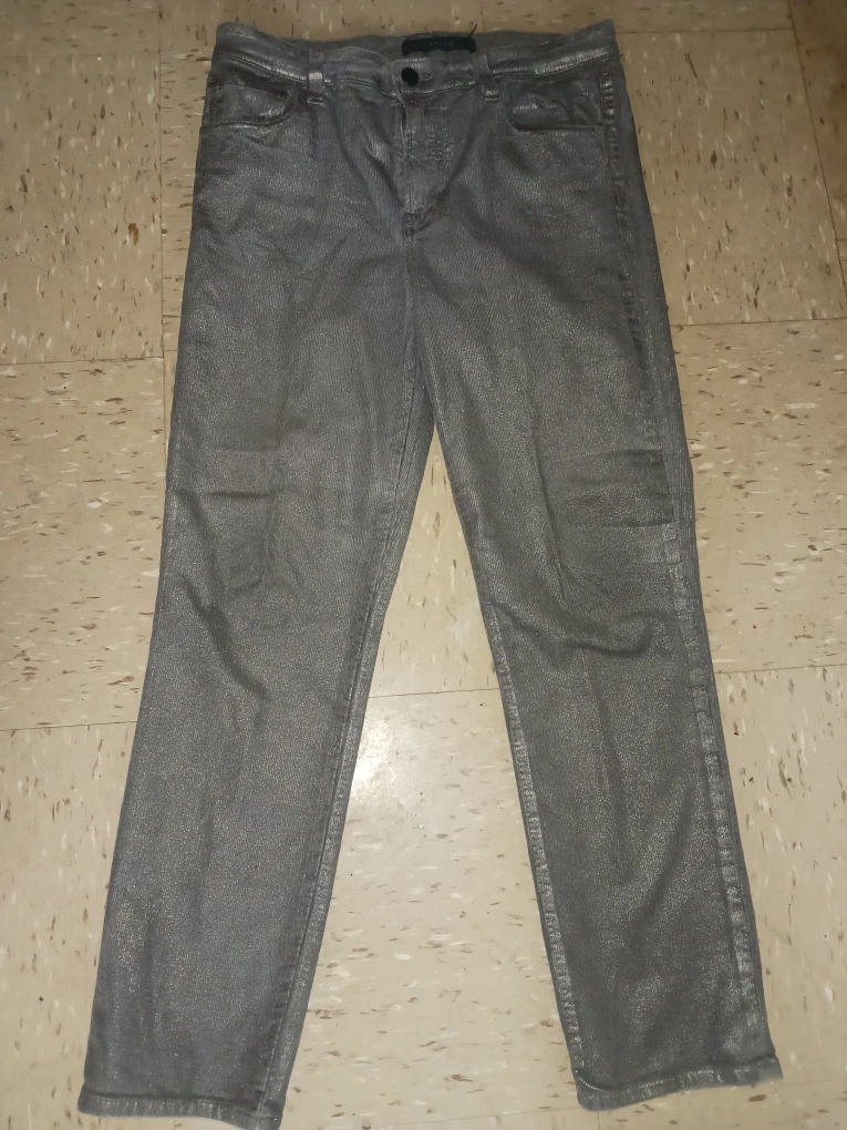 J.brand women's jeans in a stylish silver color. These jeans are perfect for adding a touch of sparkle to your wardrobe! They appear to be in good condition and ready for a new home