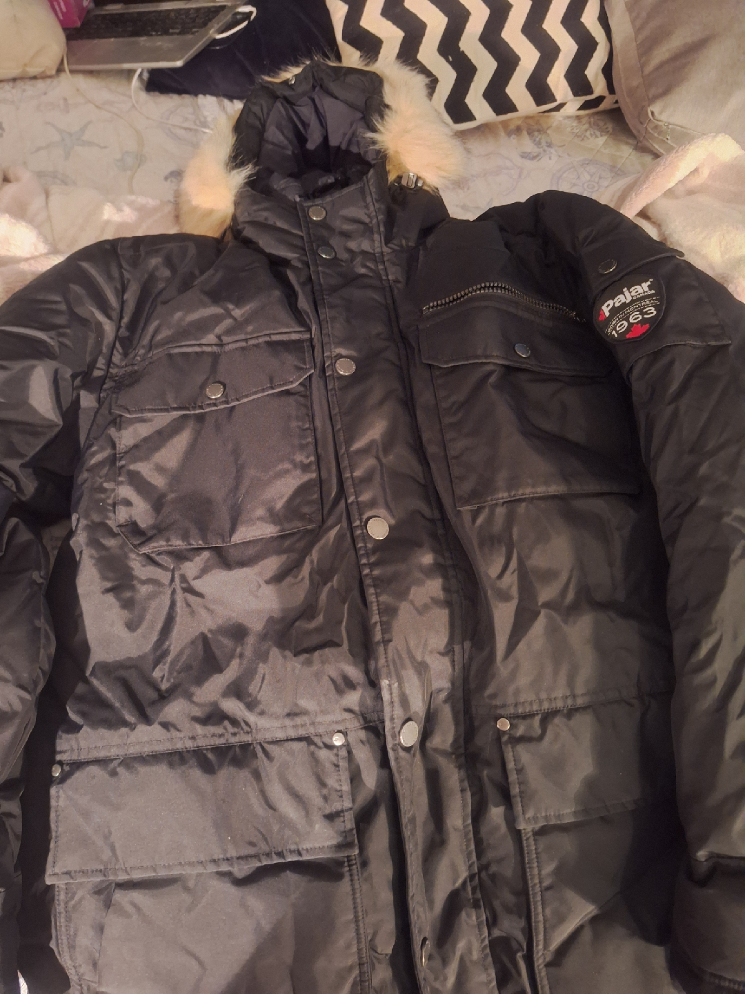 Keep cozy this winter with a Pajar winter jacket! It's in great condition and ready for a new home. The shell is 100% nylon and the lining is 100% polyester. The fill is 60% down and 40% feather, so it's sure to keep you warm!