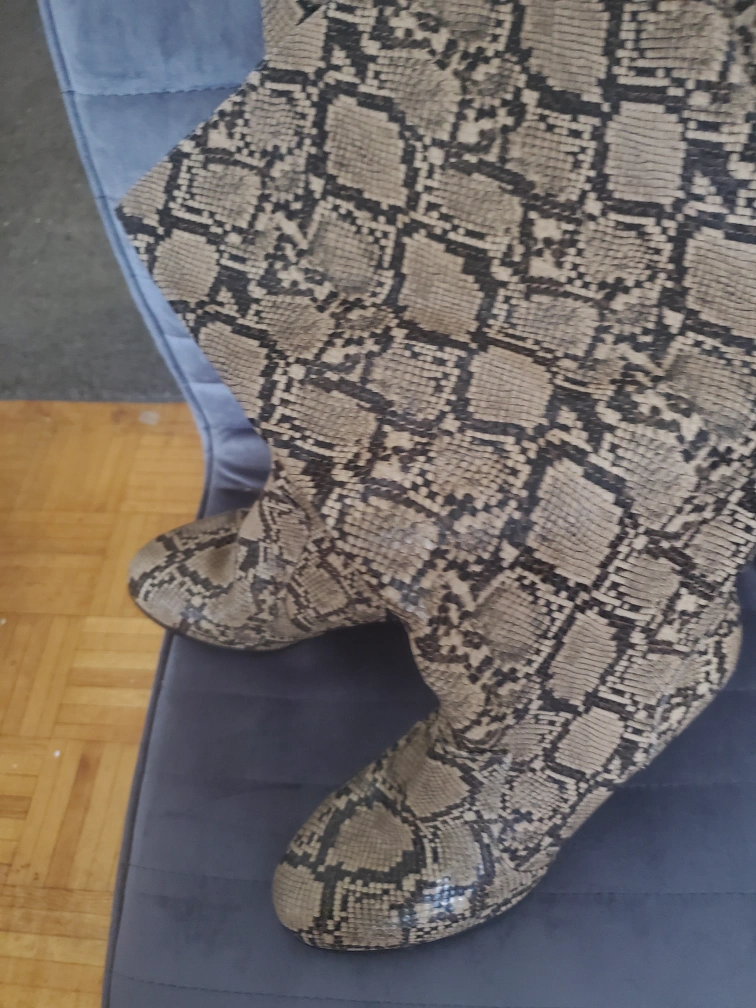 Selling a pair of Penningtons heeled boots with a snakeskin pattern! They're in great condition and are a women's size 12W
