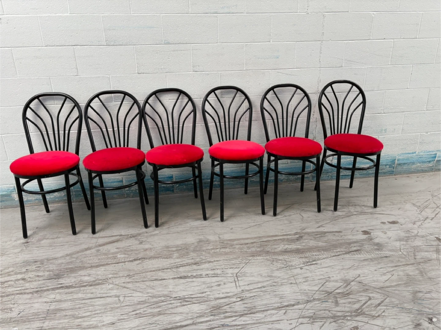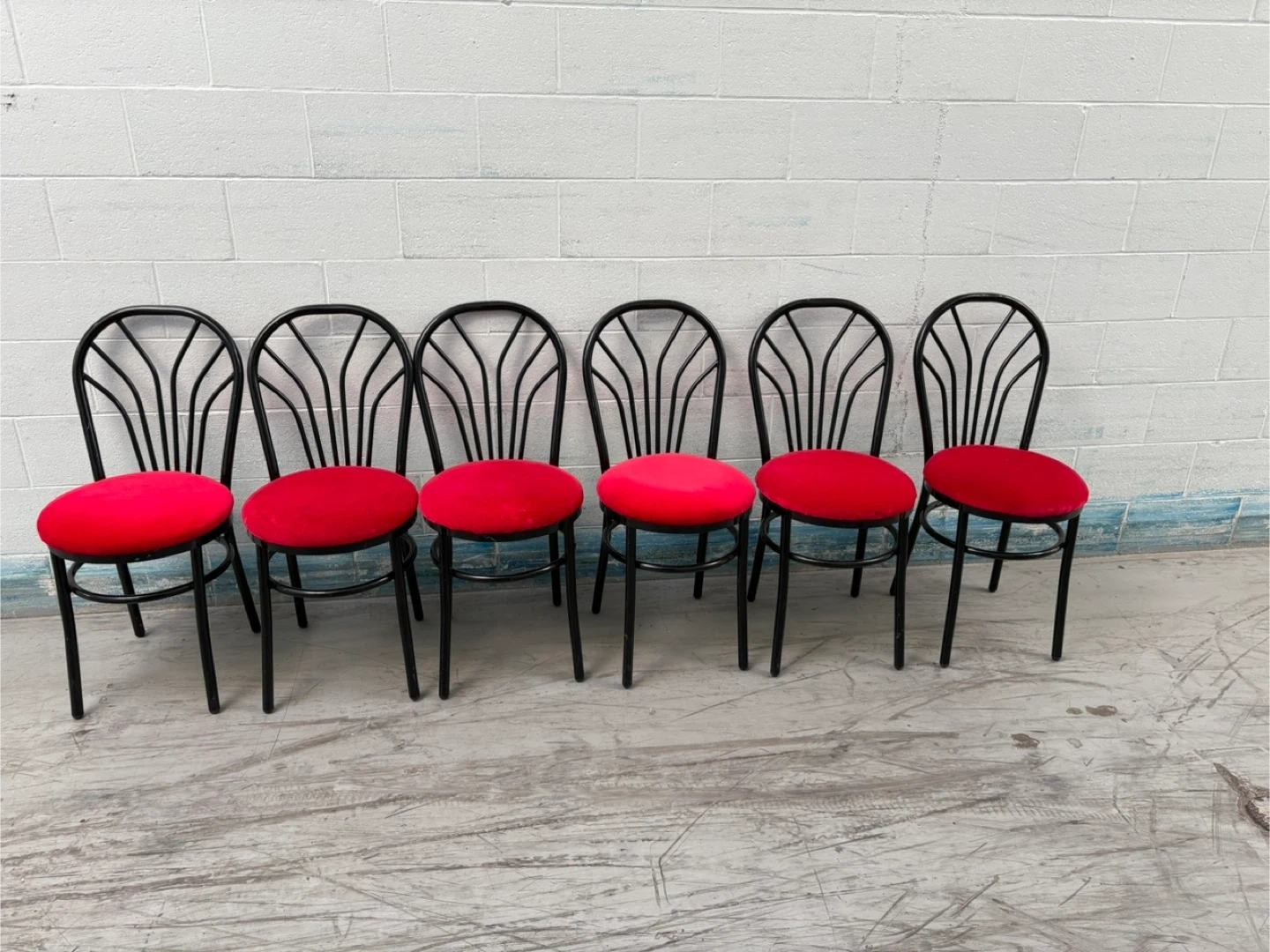 good condition Set of 6 Red Seat Black Frame Chairs