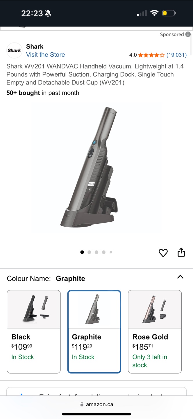 Selling a Shark WV201 WANDVAC handheld vacuum in graphite colour. It's lightweight at only 1.4 pounds and has powerful suction! It also comes with a charging dock and a single-touch empty and detachable dust cup. Originally bought for $119.29.
