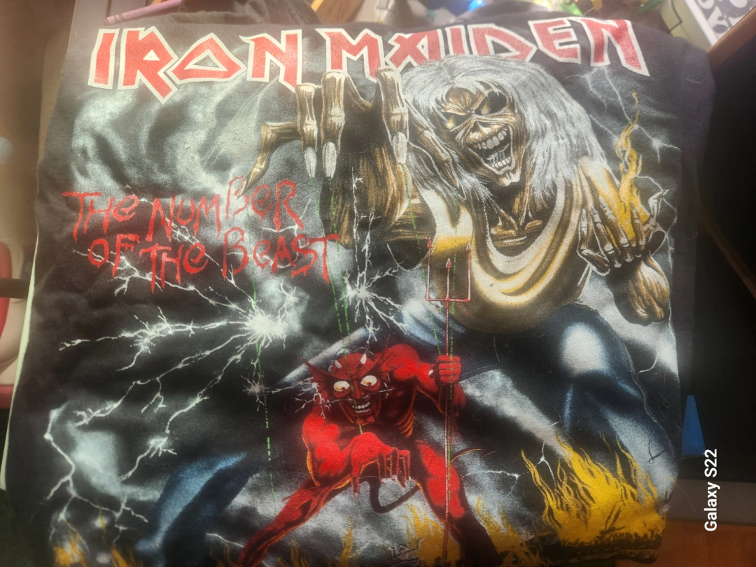 Selling an Iron Maiden T-shirt featuring the iconic "Number of the Beast" album art! It's in great condition and ready for a new home. Perfect for any metal fan!