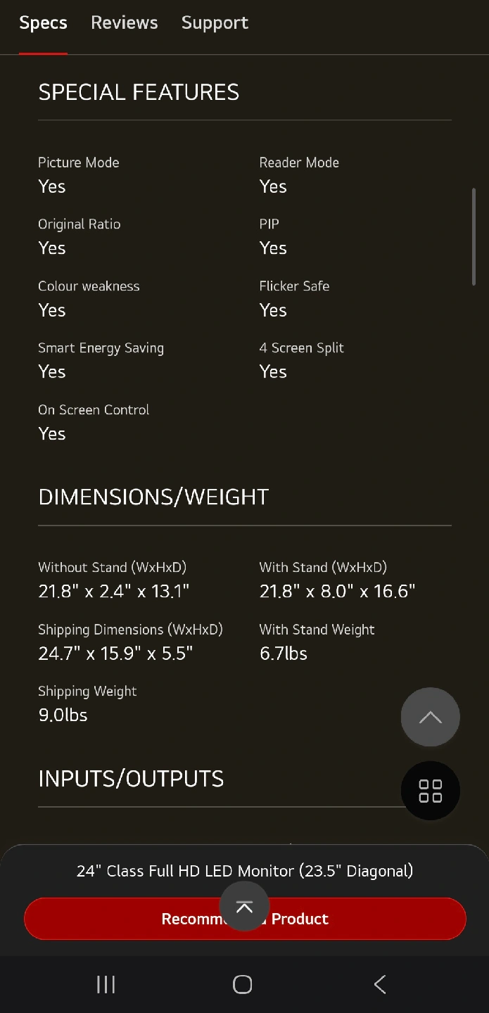 - With Stand (WxHxD): 21.8" x 8.0" x 16.6"