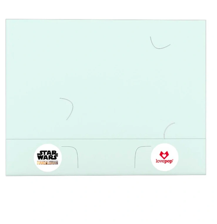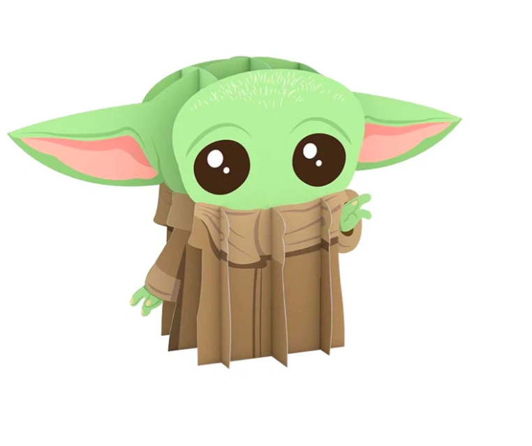 Selling a Lovepop Star Wars The Mandalorian Grogu Giant Pop-Up Gift. It's an intricate 3D decor that pops up and folds flat for easy storage. The dimensions are 7.7" L x 12.8" W x 5.3" D (open) and 12.8" W x 7.7" L (flat)