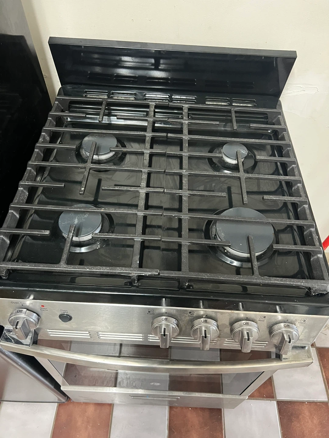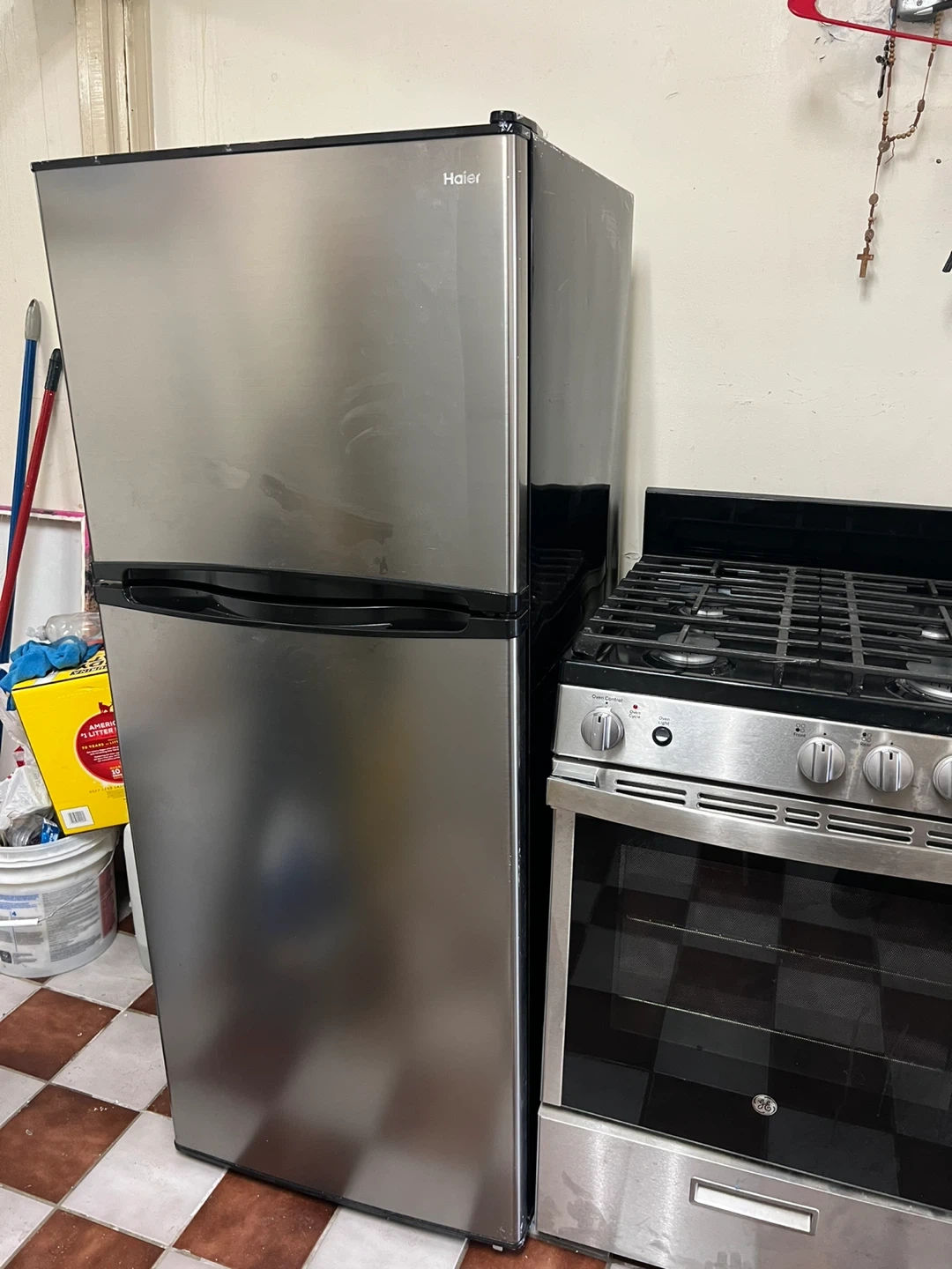 Selling a GE gas range and a Haier refrigerator. Both appliances are in good working condition and ready for a new home
