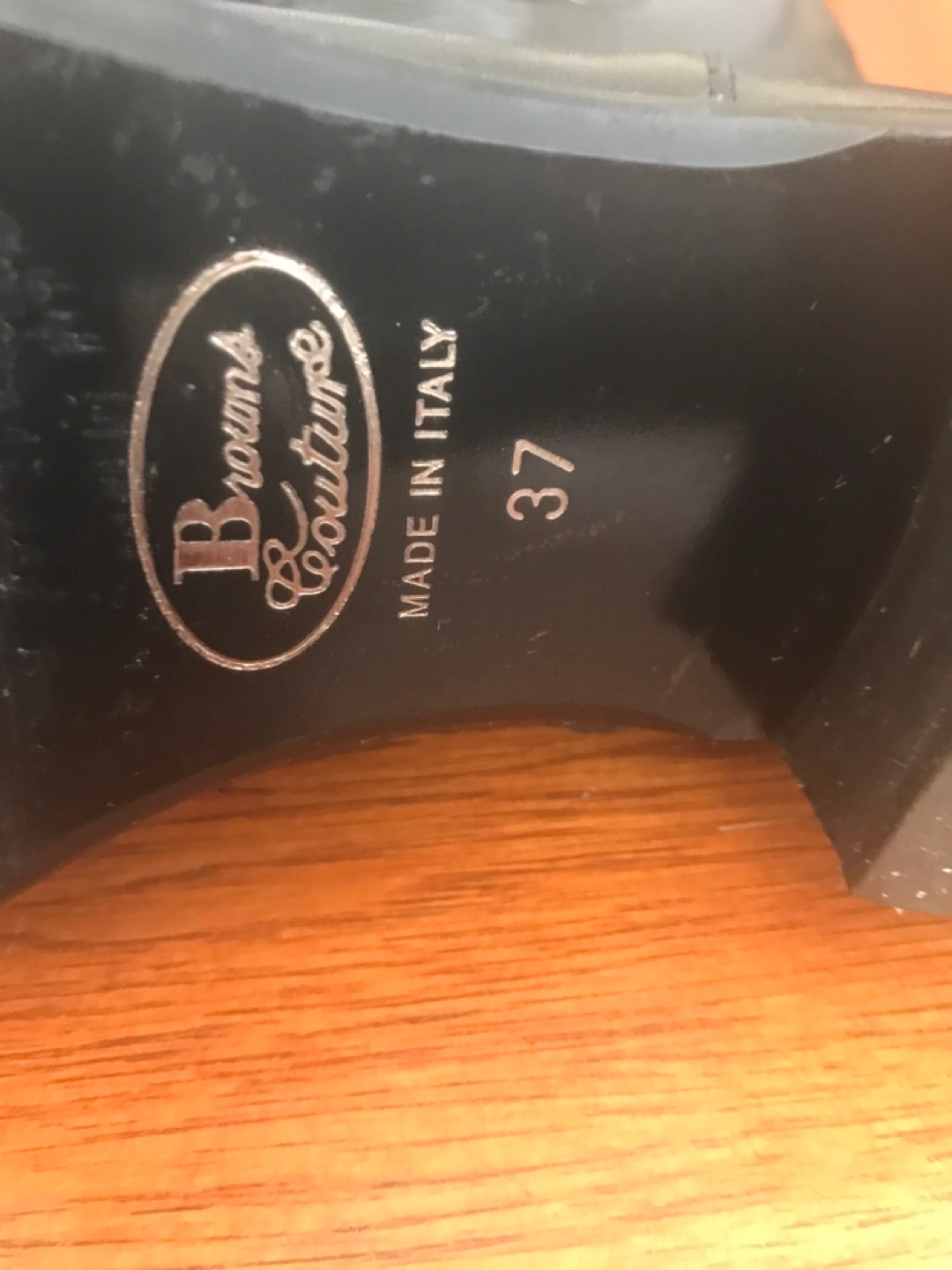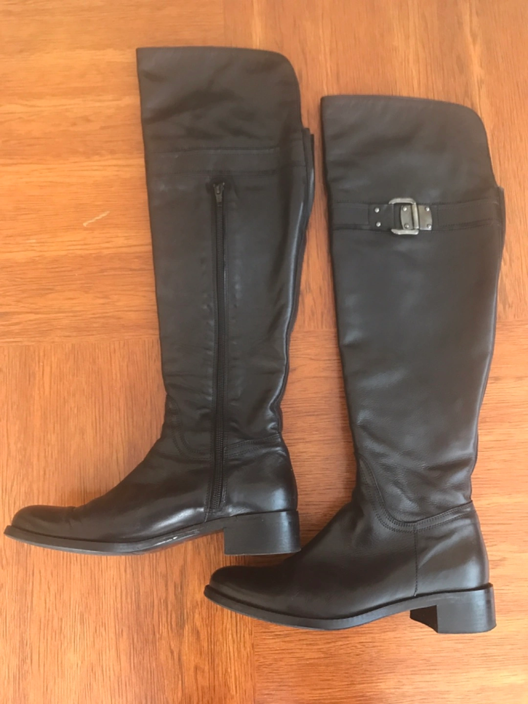 Genuine leather, almond toe. These are very comfortable boots in great condition. Boot shaft measures 19”