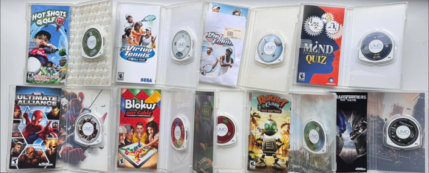 PSP-1006 model with most accessories PLUS 9 games PLUS game pouch