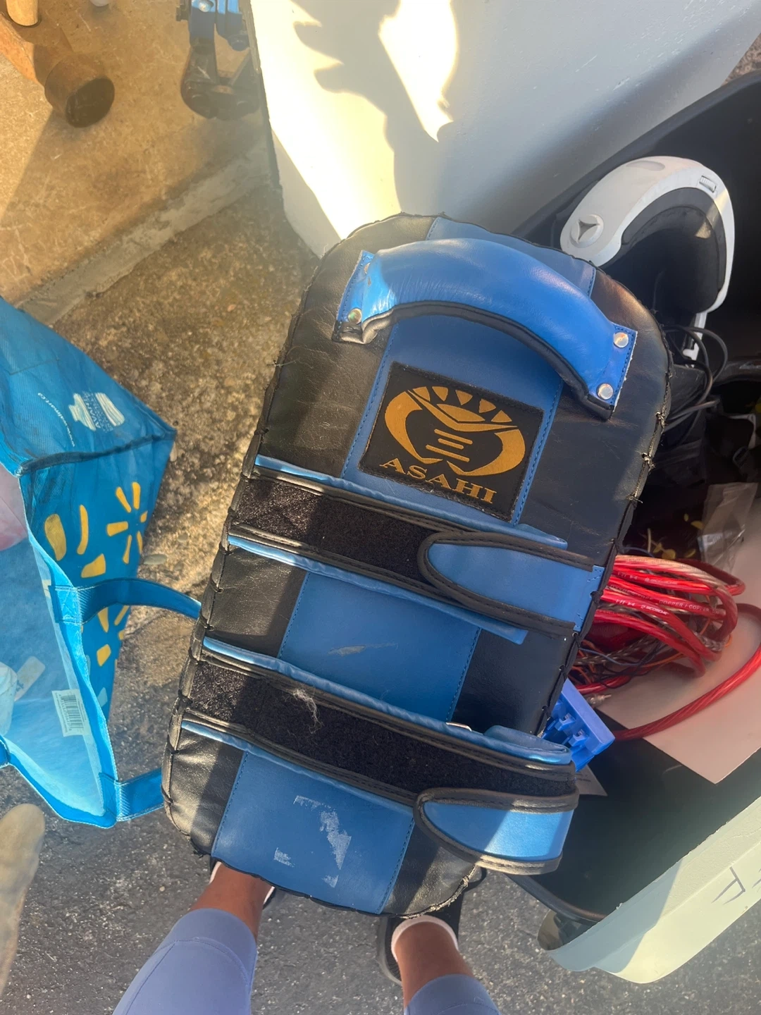 Selling an Asahi kick pad in blue and black. It's in good condition and ready for your training needs