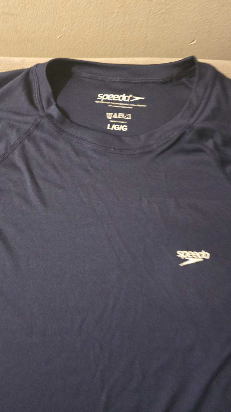 Selling a Speedo long sleeve rashguard in size large. It's a nice navy colour and made of 100% polyester. Perfect for swimming or any water activity!( Never Worn)