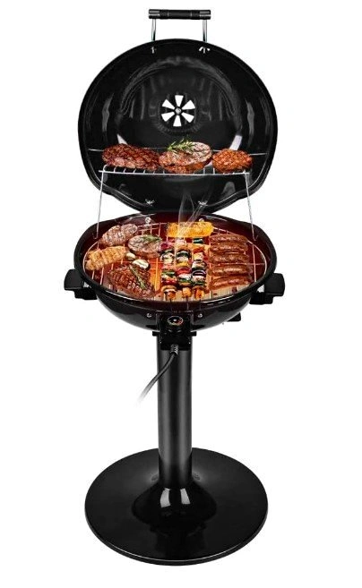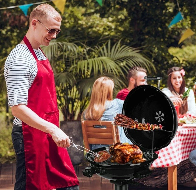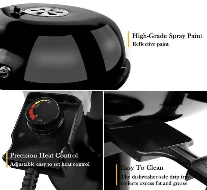 You can adjust the sensitive temperature regulator. Grill cover ensures rapid heating. Equipped with 240 square inches of circular grilling surface, which lets you make over 15 servings. Foldable warming rack offers extra space. Both food racks can be disassembled and are easy to clean.