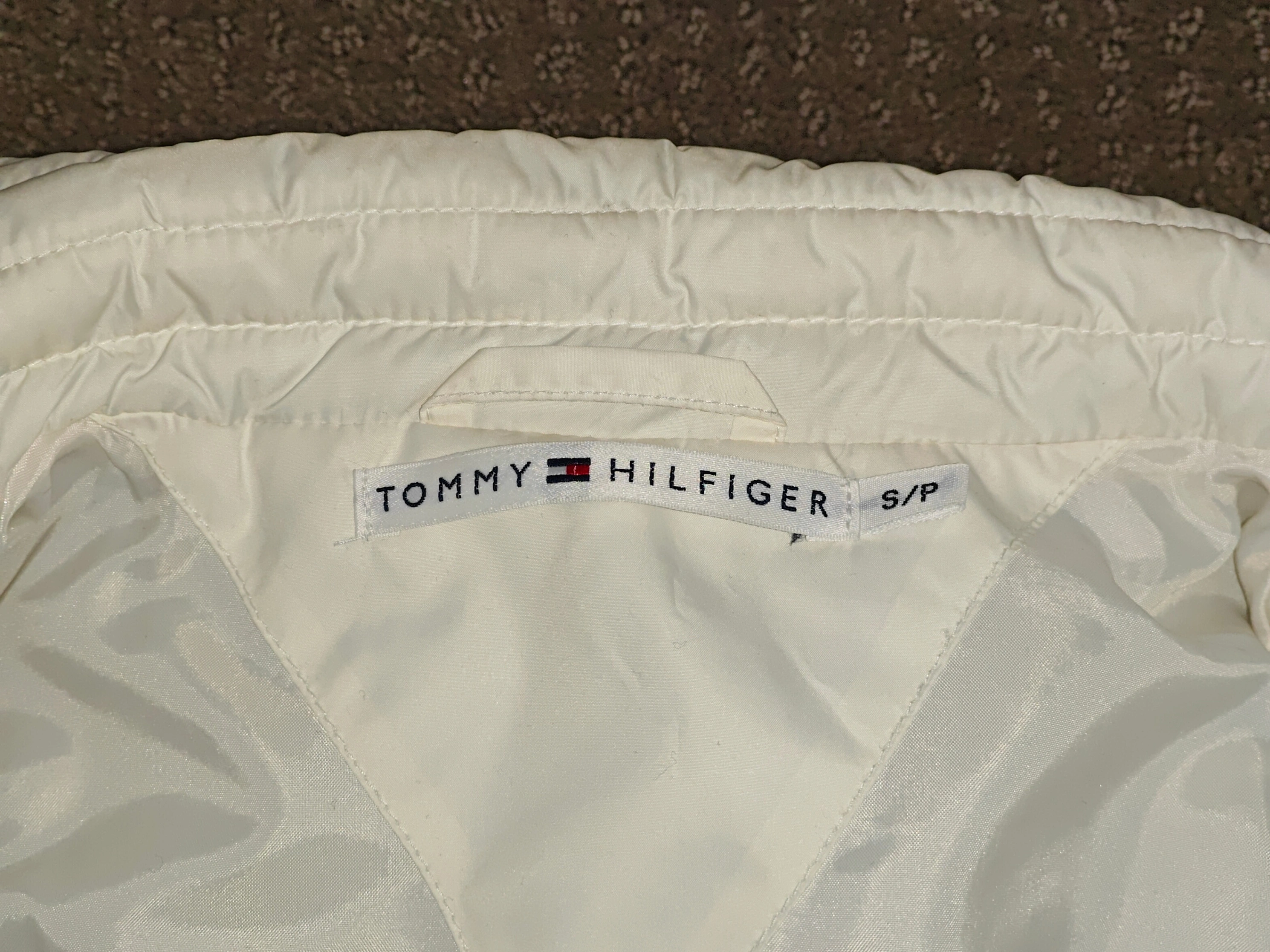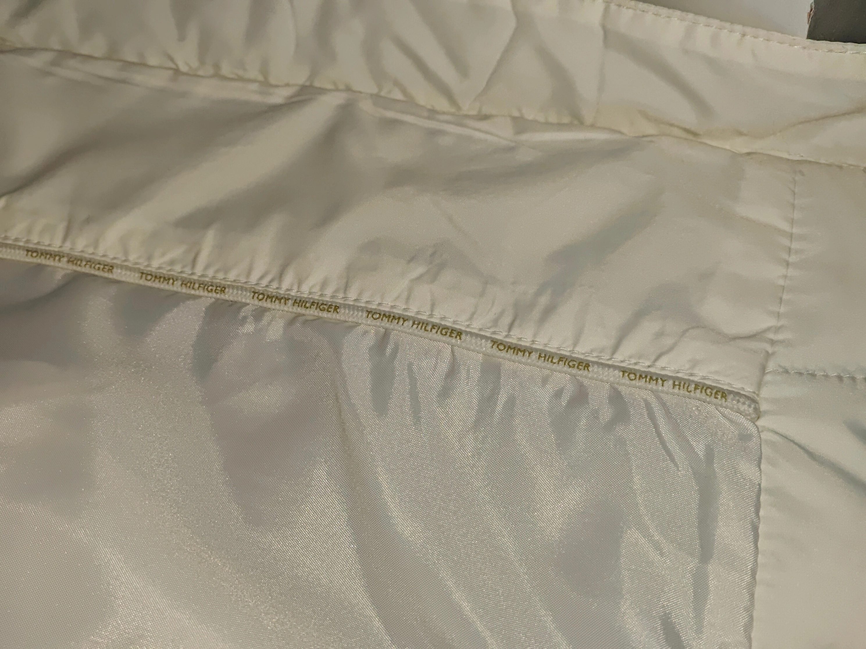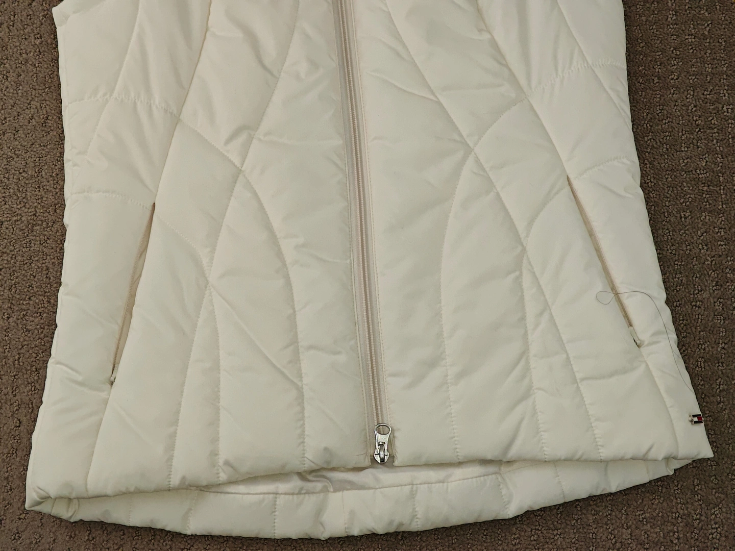 I am selling a Woman Tommy Hilfiger Jacket White Puffer Vest in used, excellent condition. Only worn a couple times. No stains or rips on the jacket.