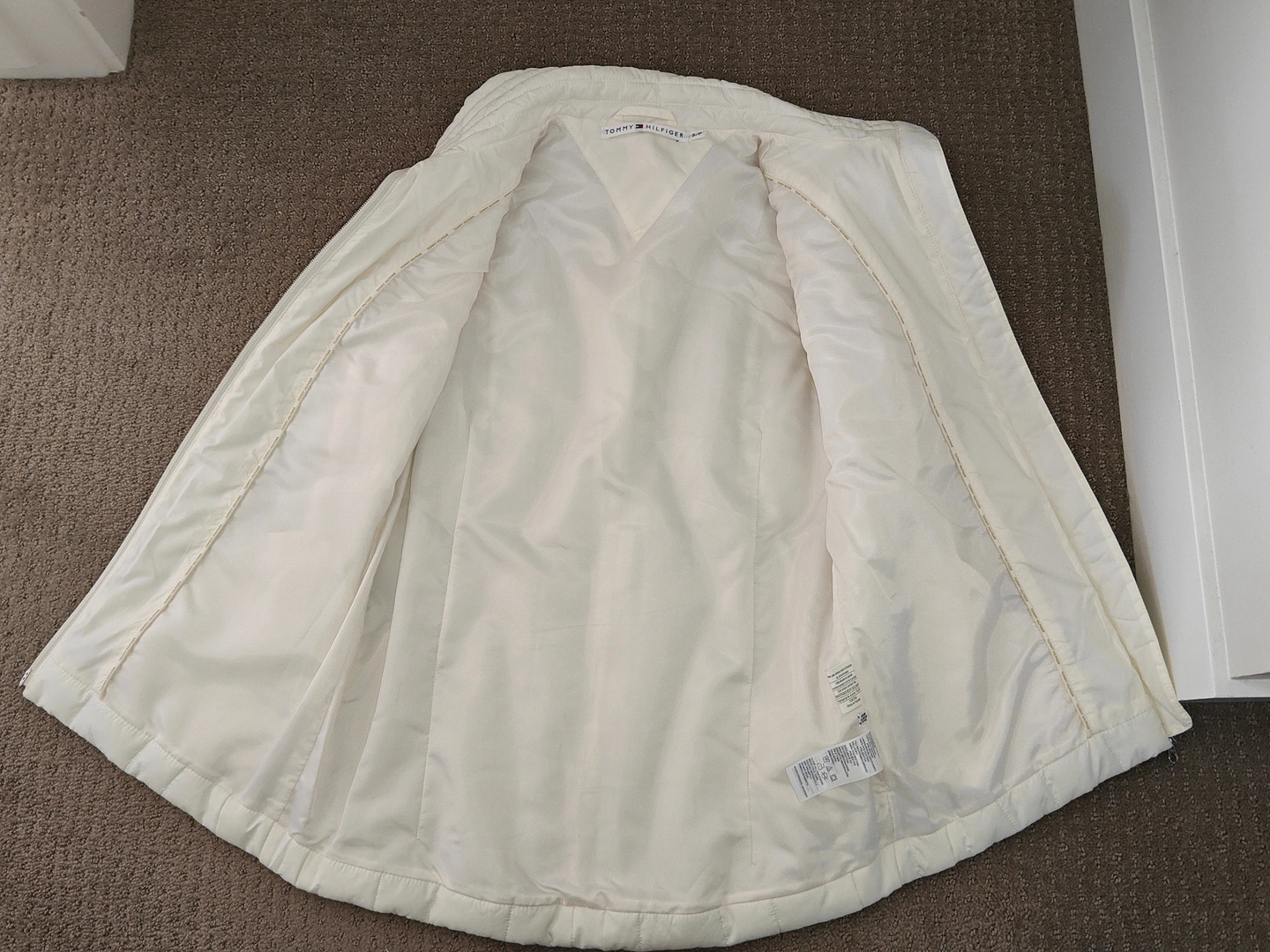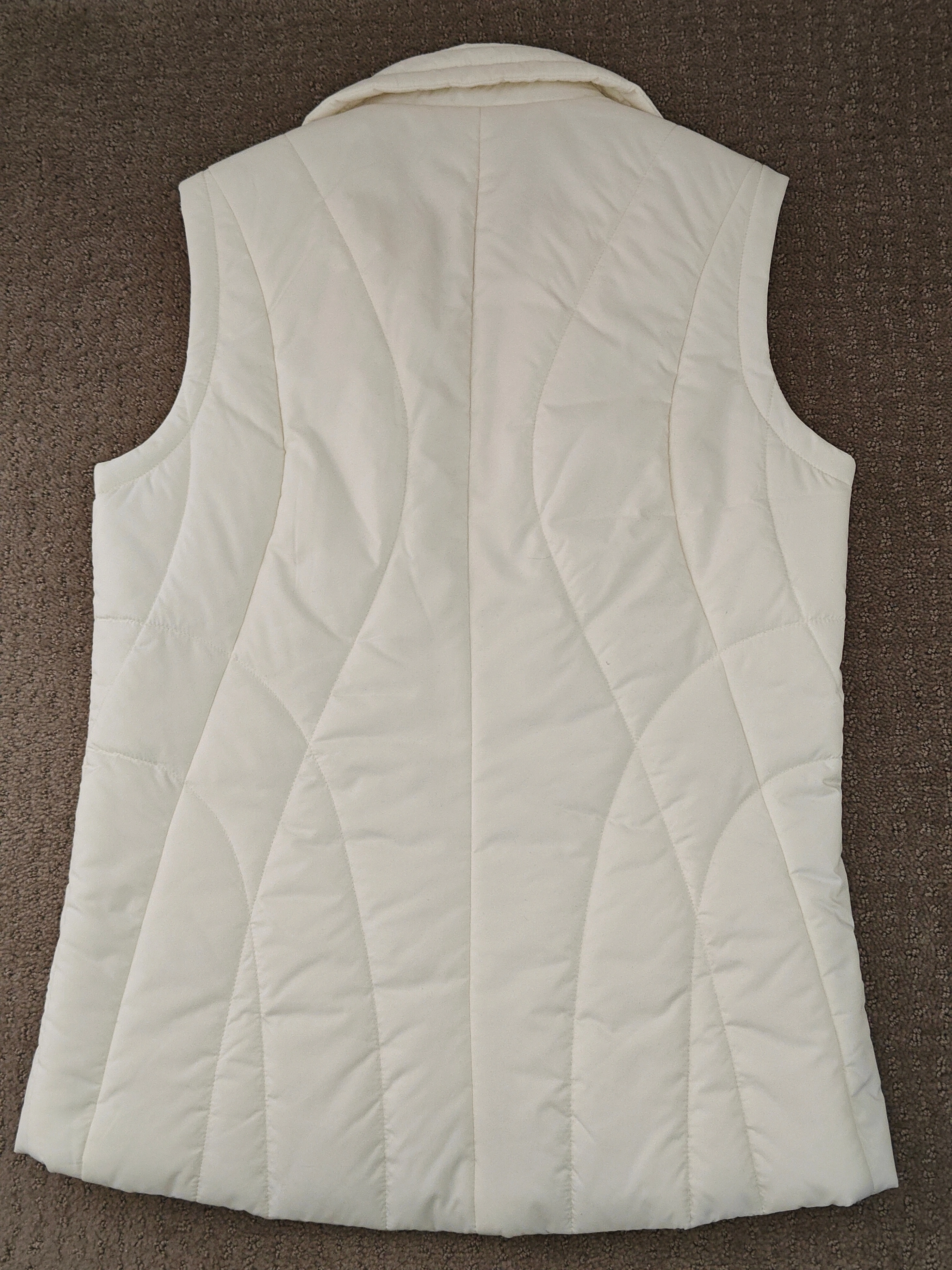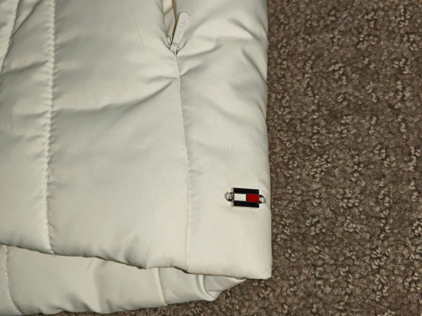 I am selling a Woman Tommy Hilfiger Jacket White Puffer Vest in used, excellent condition. Only worn a couple times. No stains or rips on the jacket.