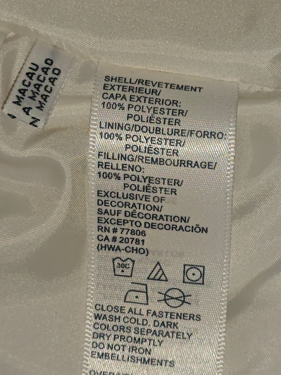* Filling: 100% Polyester