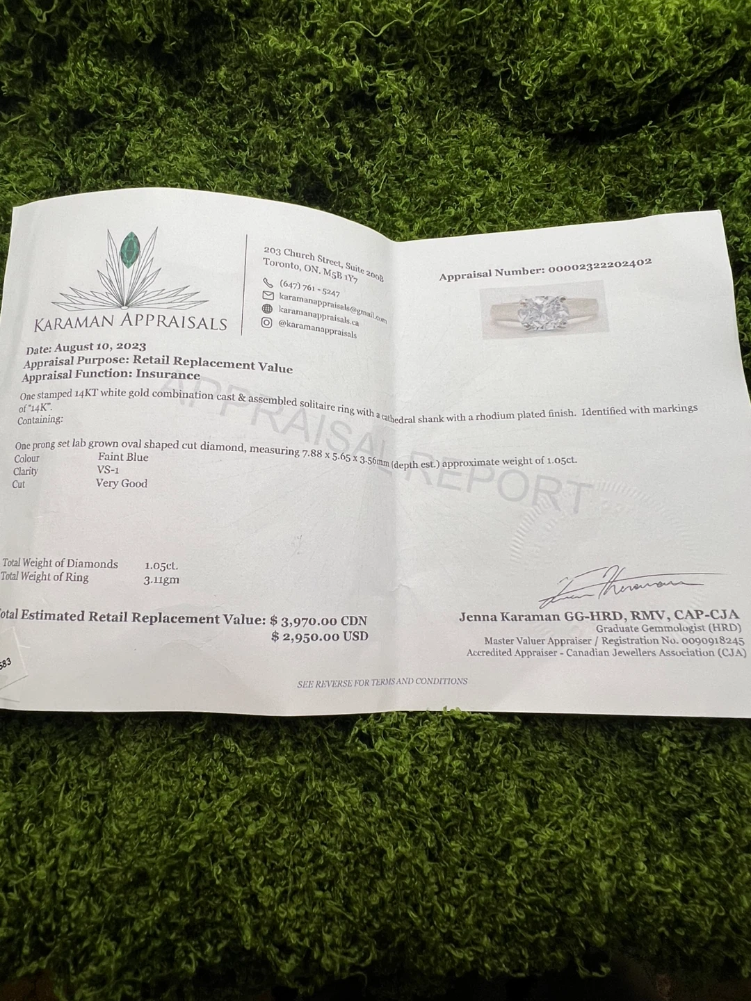 Comes with official appraisal document from Karaman Appraisals (Canadian Jewellers Association accredited).
