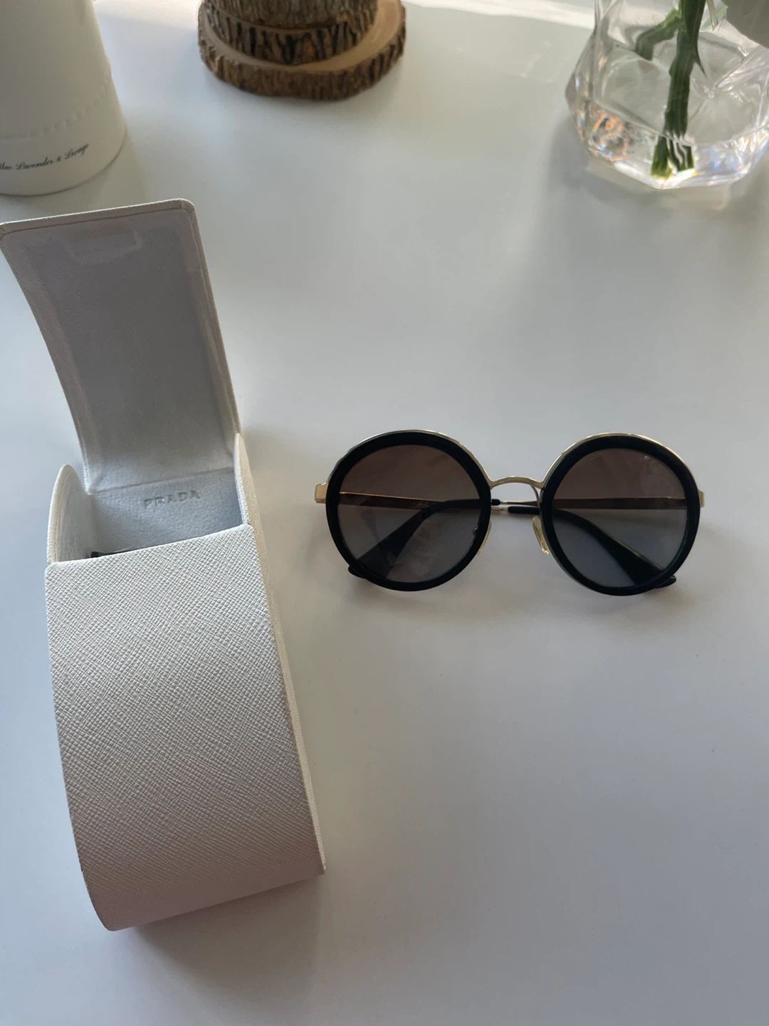 Prada sunglasses Prada Cinéma Round - Sunglasses PE '17 Advertising Campaign Model. Full circle 'silhouette in acetate and distinctive upper profile with metal bridge that stands out and illuminates the frame. Cinéma auctions with Prada Lettering Logo. Details Front in Turtle Metal gold finish 100% UVA / UVB protection Adjustable nose pads adaptable to each Fit Measure lens-nose-rods: 55-22-135 mm Article accompanied with dedicated packaging Features Metal Gold finish Made in Italy