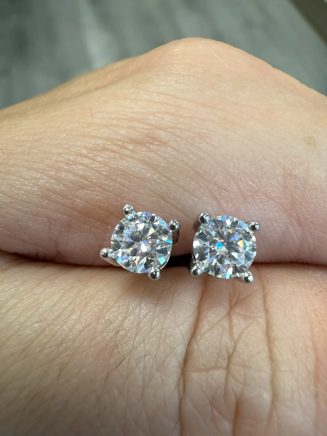 Selling a pair of brand new 0.5 Ct each earring moissanite stud earrings. They are brand new and would make a great gift! π Secure Screw backings. Great for kids. Come with box and authentication certificate and card.