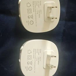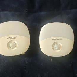 Selling a pair of AUVON plug-in LED night lights with motion sensor and adjustable brightness.