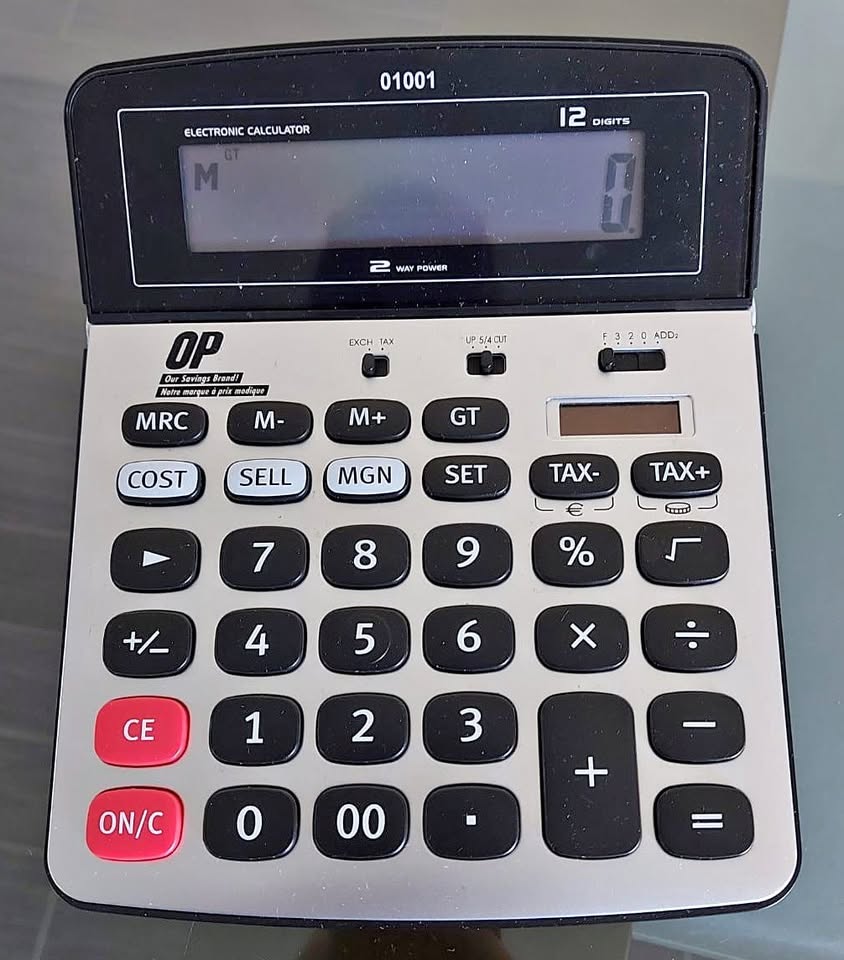 Reliable desktop calculator with large 12-digit display. Easy to read, sturdy build, and perfect for office, school, or home. Brand: OP.