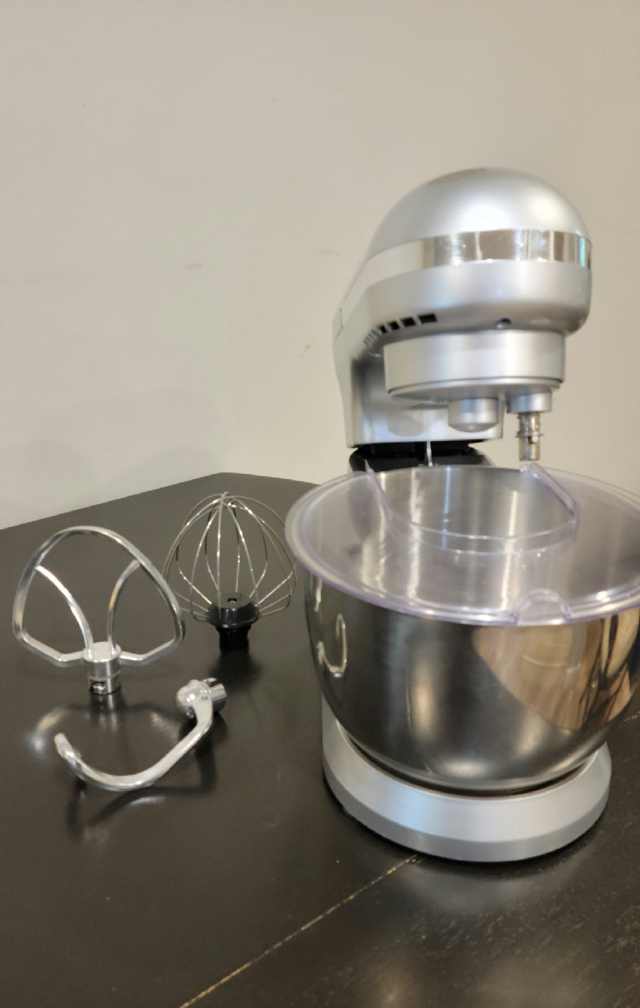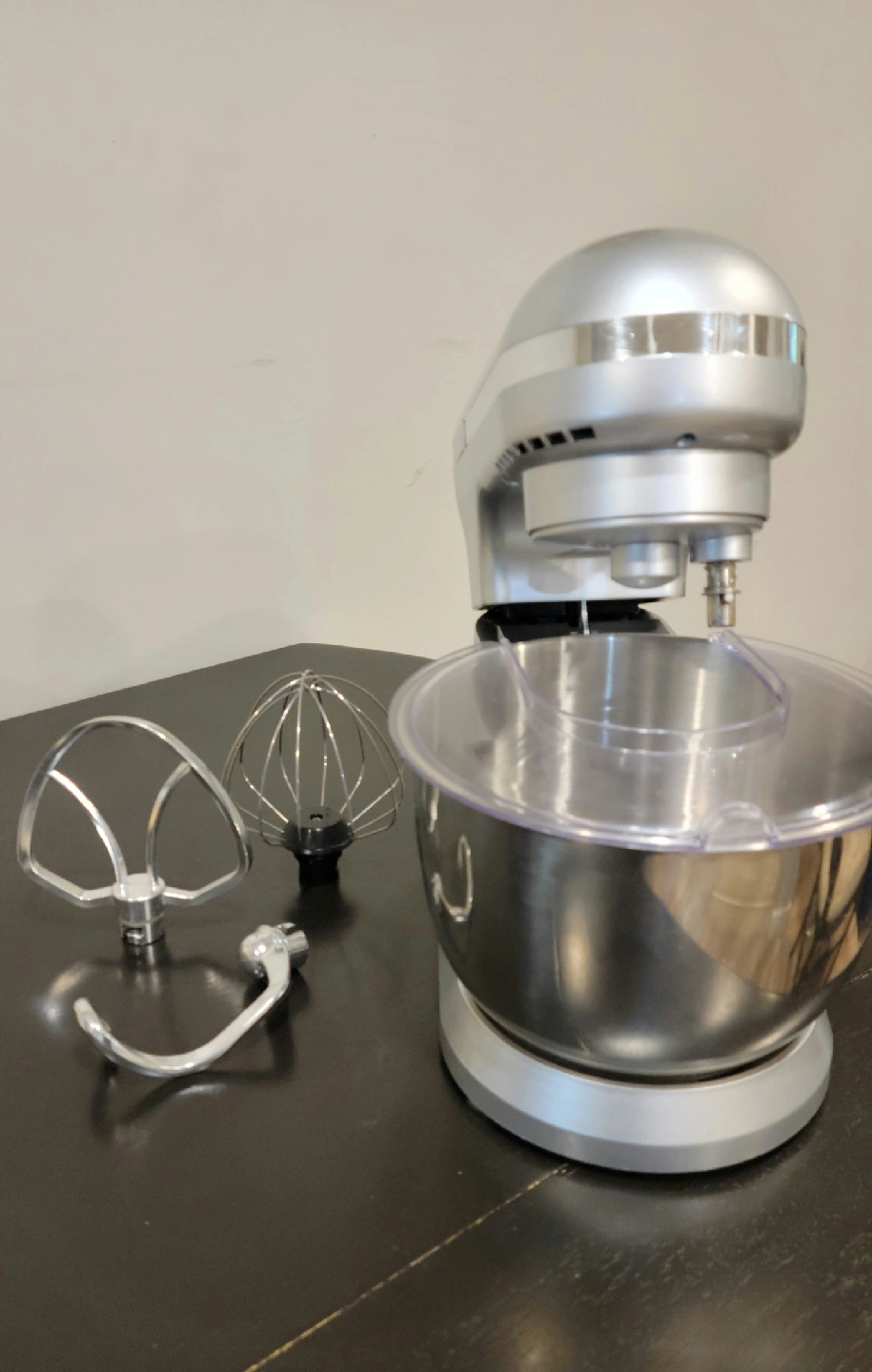 Selling a Frigidaire stand mixer in silver! It comes with all the attachments you see in the photos, including the whisk, dough hook, and beater. Perfect for all your baking needs!