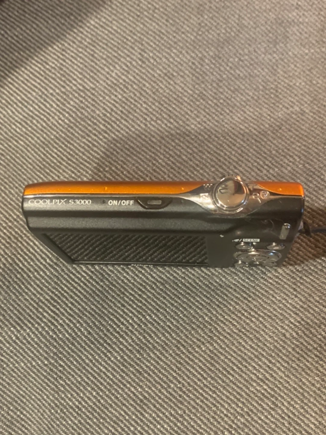 Selling a Nikon COOLPIX S3000 digital camera in orange! It's a compact and easy-to-use camera perfect for everyday snapshots. Comes with a protective leather case.