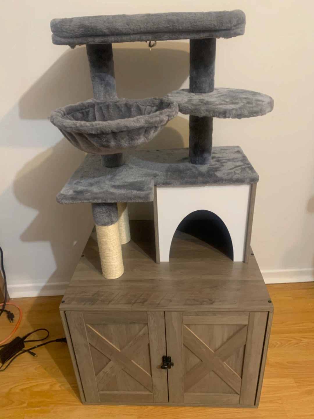 Grey Cat Tree with Condo & Scratching Post