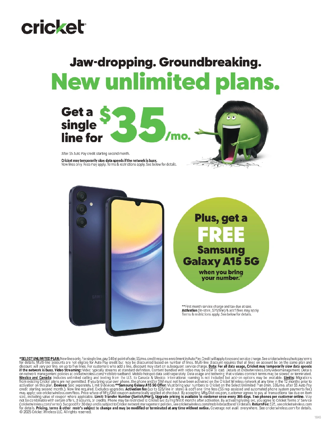 Get a FREE Samsung Galaxy a15 5G when you join Cricket wireless on the $60 Supreme Unlimited plan!