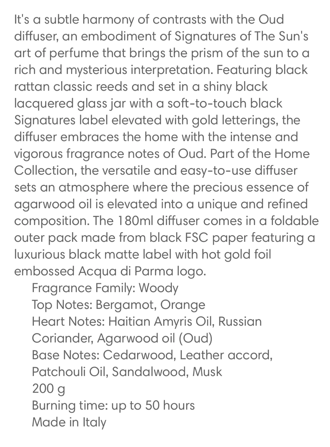 Acqua di Parma Oud Diffuser - BOTTLE FOR REFILL