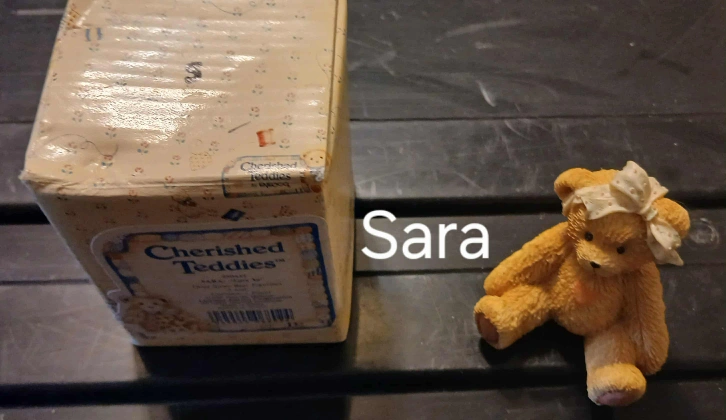 Selling a cute Cherished Teddies figurine named Sara! It comes with its original box, making it a great addition to any collection or a sweet little gift