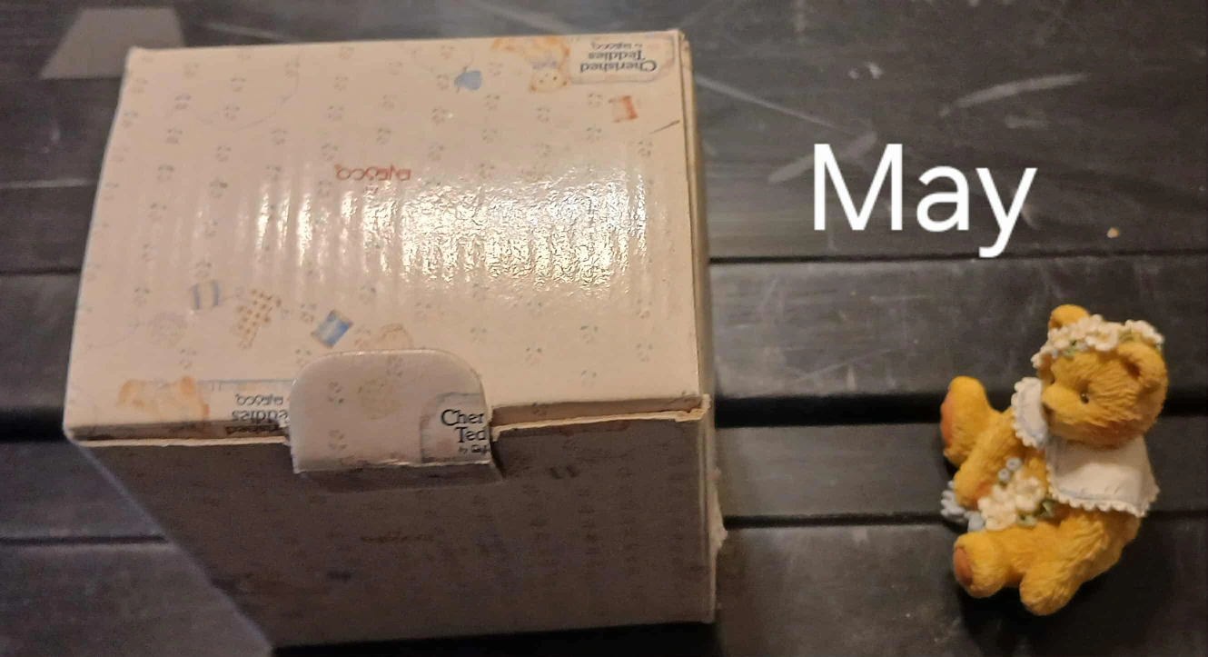 Selling a cute Cherished Teddies figurine named "May"! It comes with its original box. A sweet addition to any collection or a lovely gift