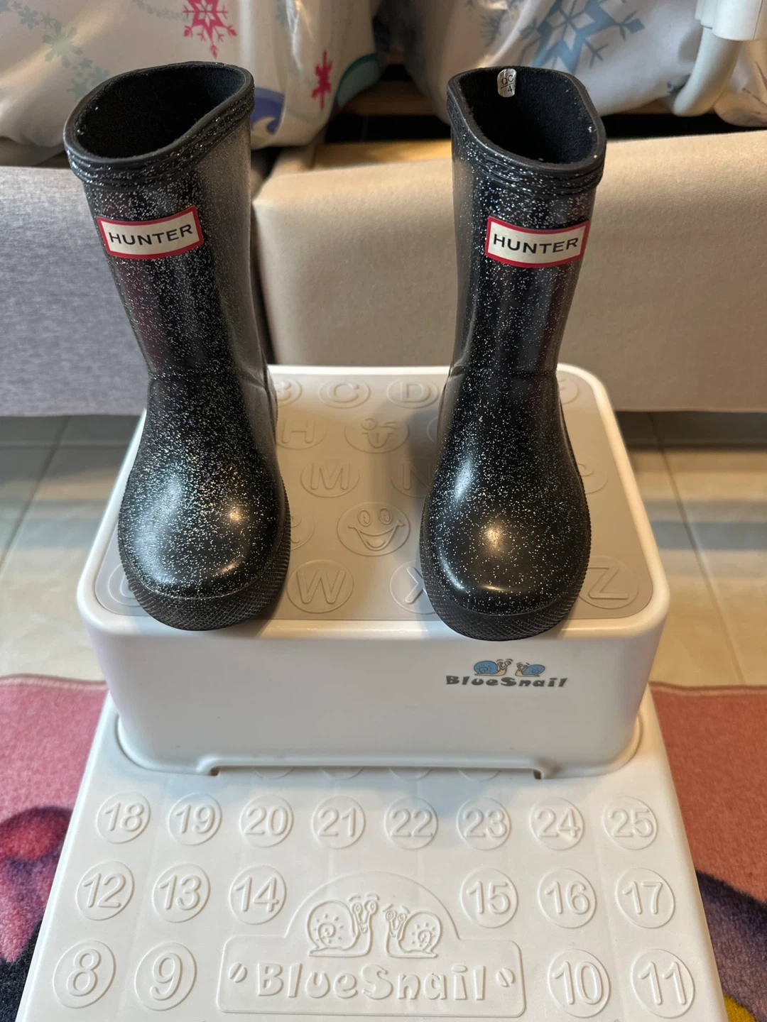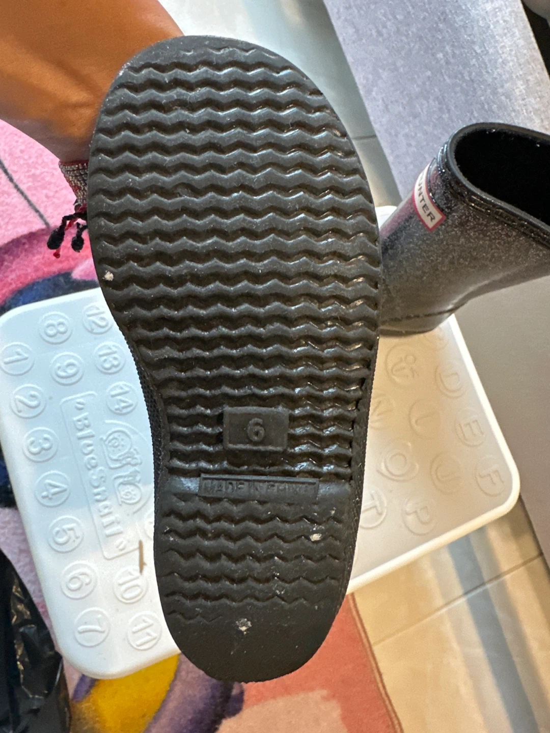 Moving sell ❗️‼️ Cute pair of Hunter kids' rain boots in size 6. These are black with glitter and in good condition, perfect for puddle jumping!