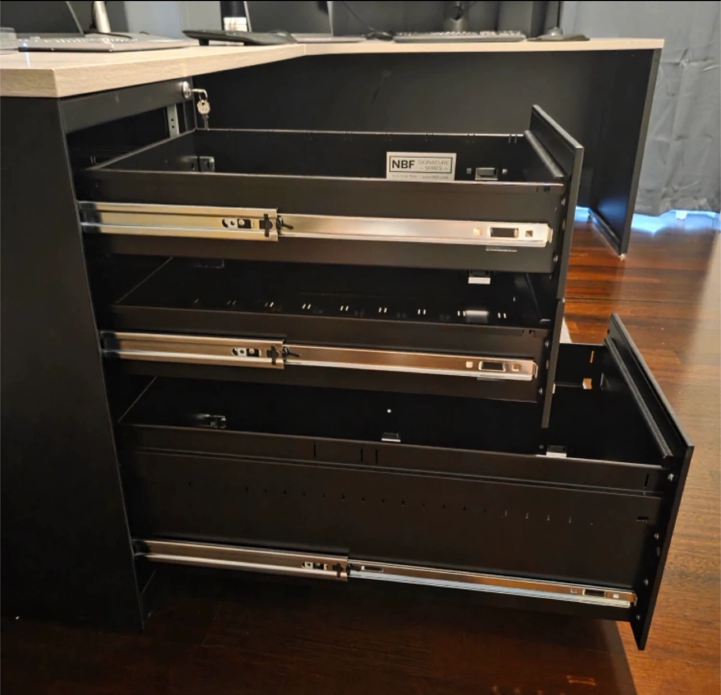 NBF Signature Series L-Shaped Desk with File Cabinet