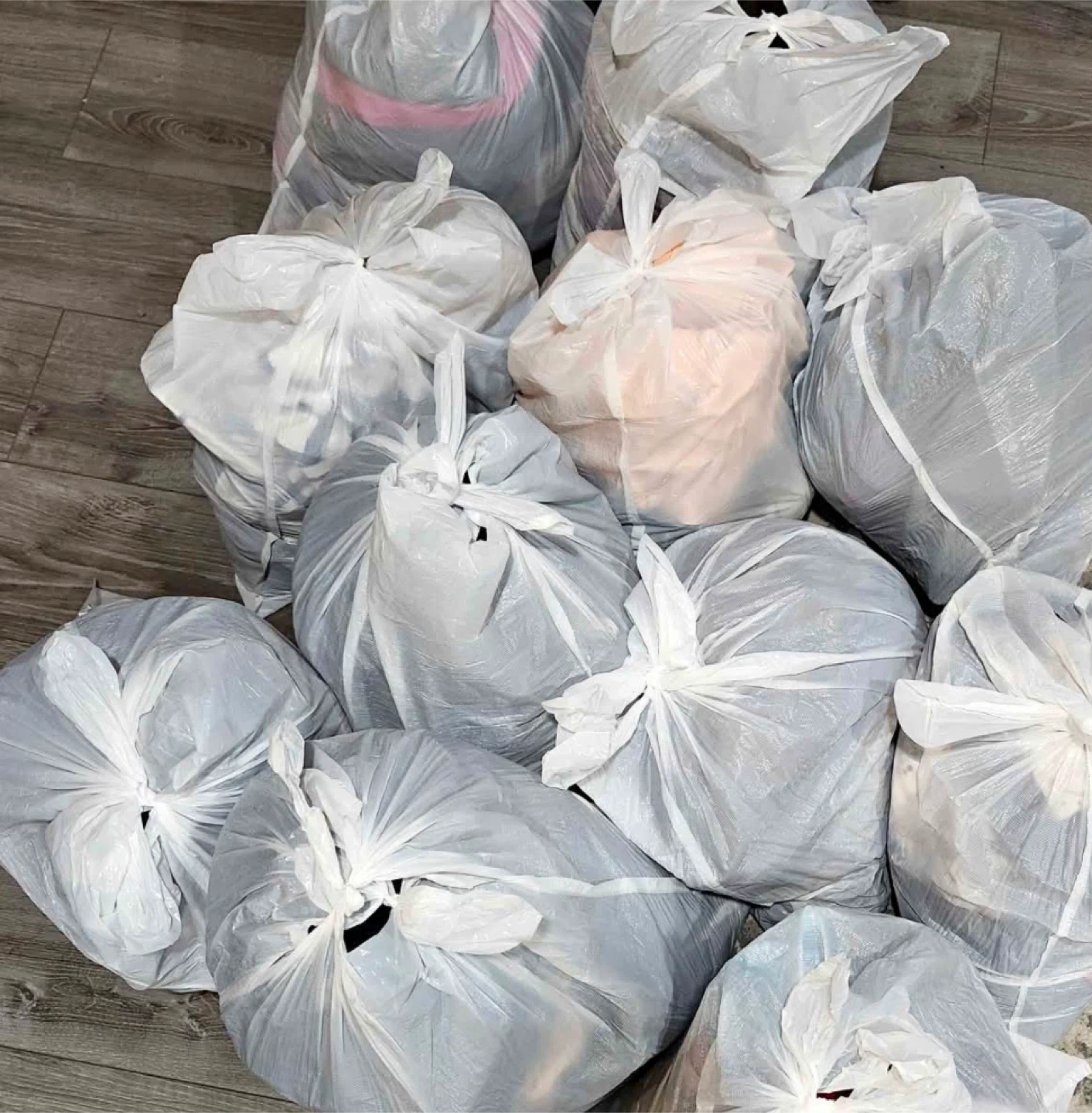 Mystery lot of womans , men’s and kids clothes. All different sizes .But I have a total of 100 bags available , If you take all I'll give you a deal. Or $15 each bags. Lot includes tops. Pants. Dresses. Bras. So much more stuff. ((Some brands))