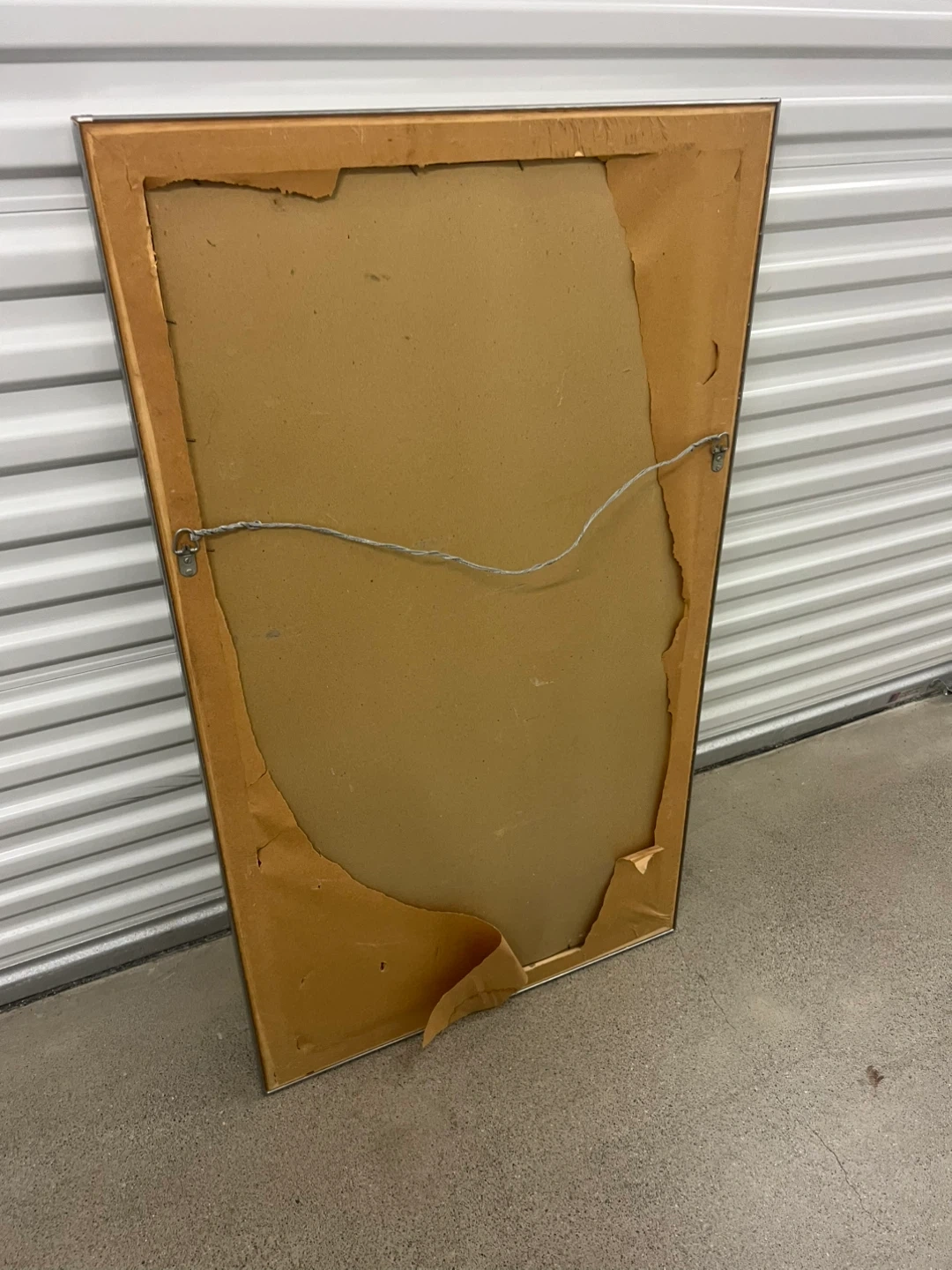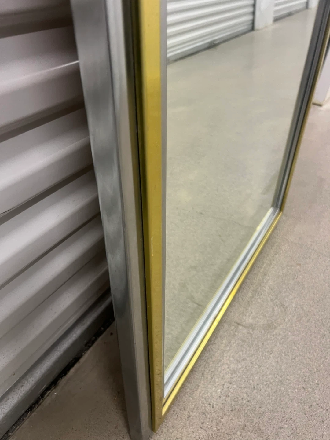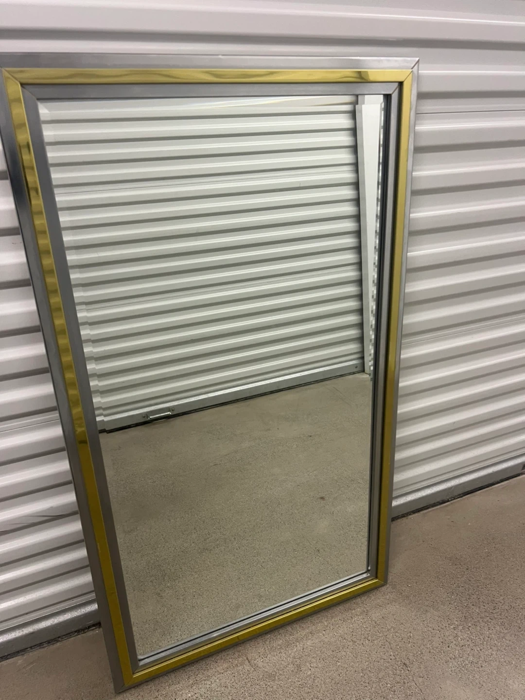 Selling a framed wall mirror with a gold and silver frame. The back has some wear and tear, as shown in the photos.