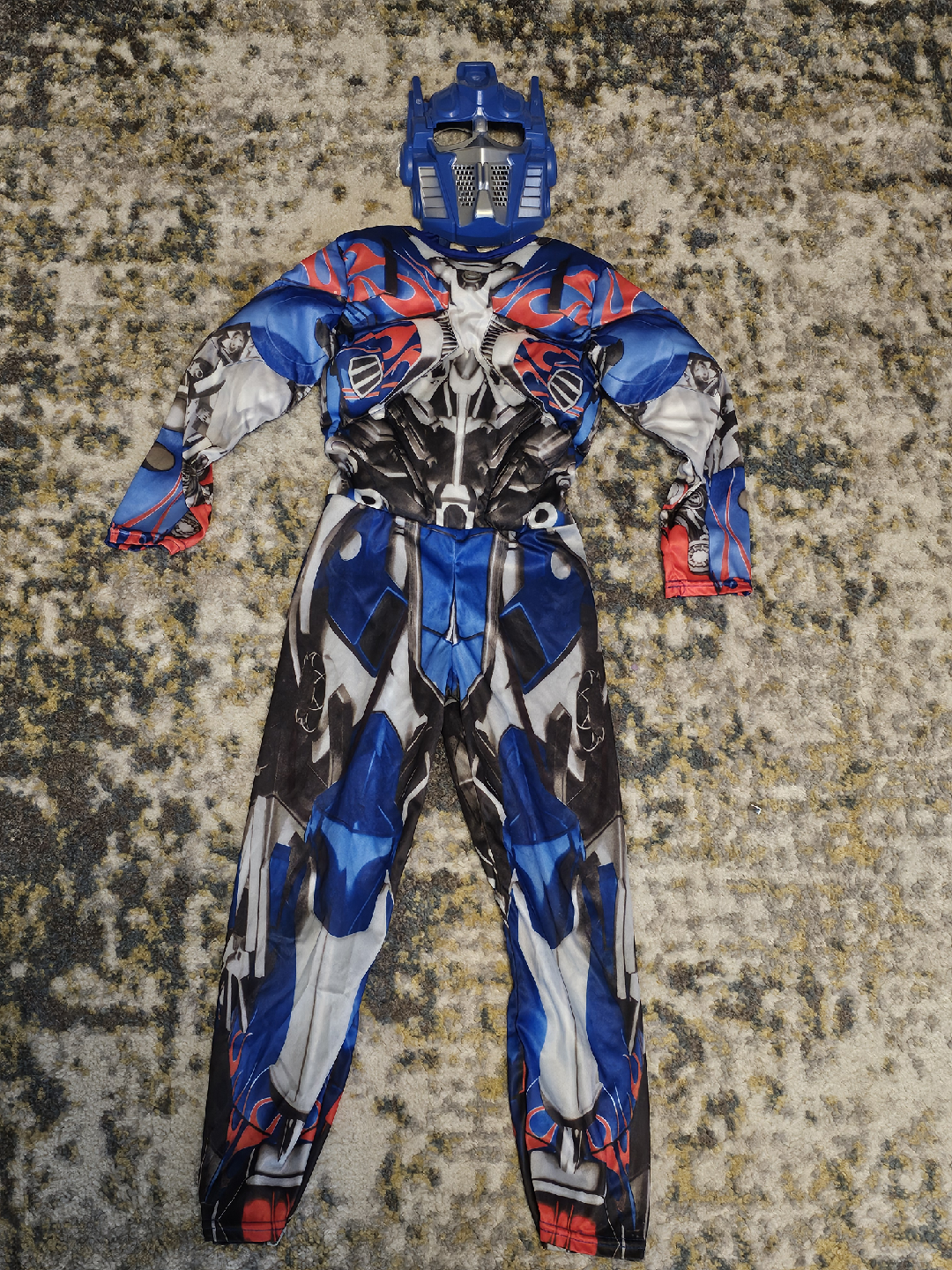 Get ready to roll out! This Optimus Prime costume is perfect for your little Transformer. It includes the mask and full body suit. Great for Halloween or dress-up.